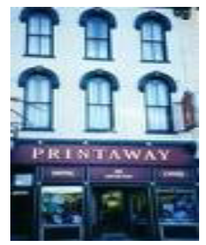 • Keep the lettering small remembering that the reader will be in close proximity to the sign. Use several lines where necessary and consider curving the top line at the head of the window.