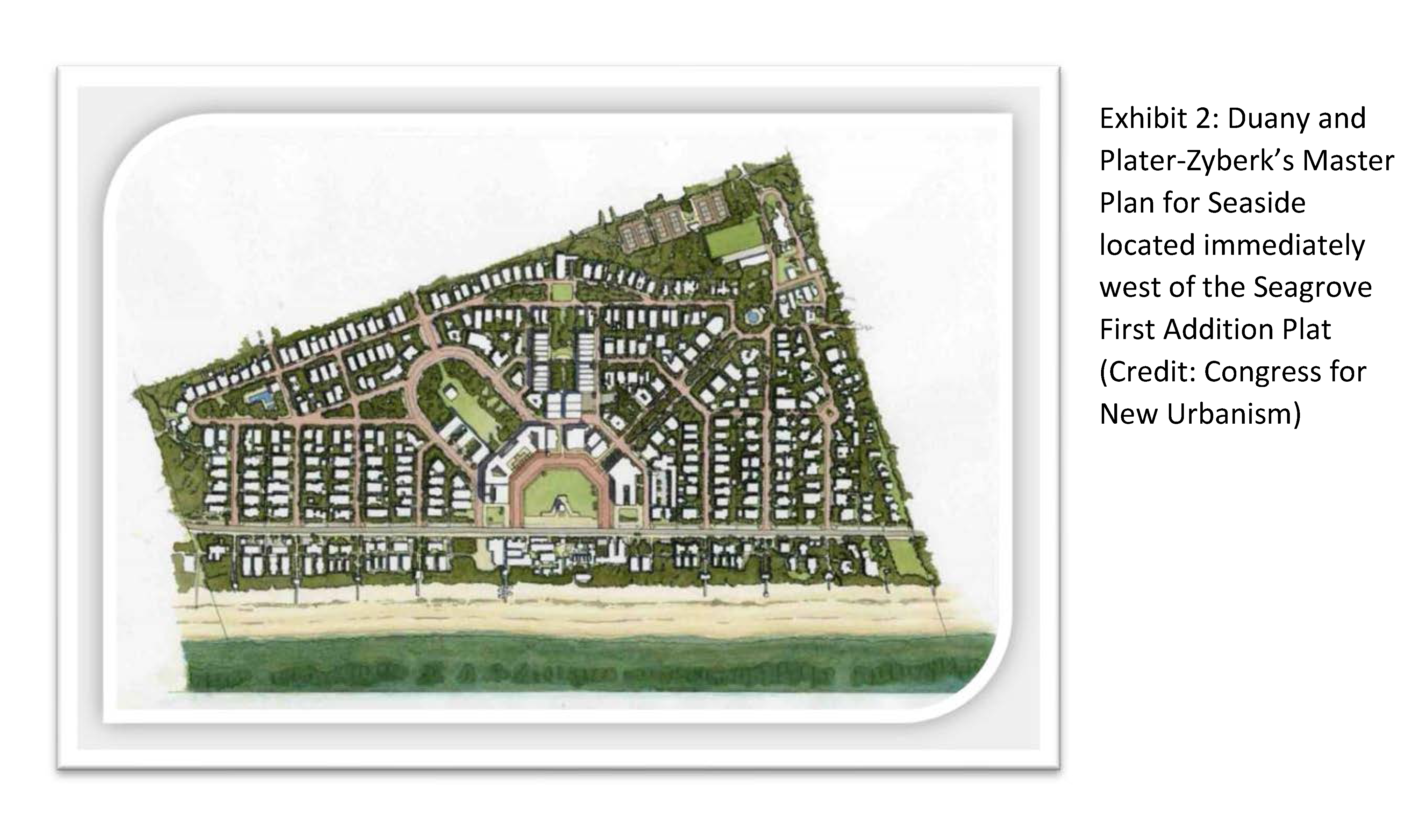 The Seagrove community, for the most part, also pre-dates the development of the adjacent Seaside community which was conceptualized in the late 1970s and master planned in the early 1980s. The first homes in Seaside were built in 1981. The Seaside development pattern, which has become one of the most well-known hallmarks of the New Urbanism movement, includes a town center from which other streets project on a radial plan (See Exhibit 2). Two main roads connect the Old Seagrove Neighborhood to Seaside, Forest Street and Grove Avenue.