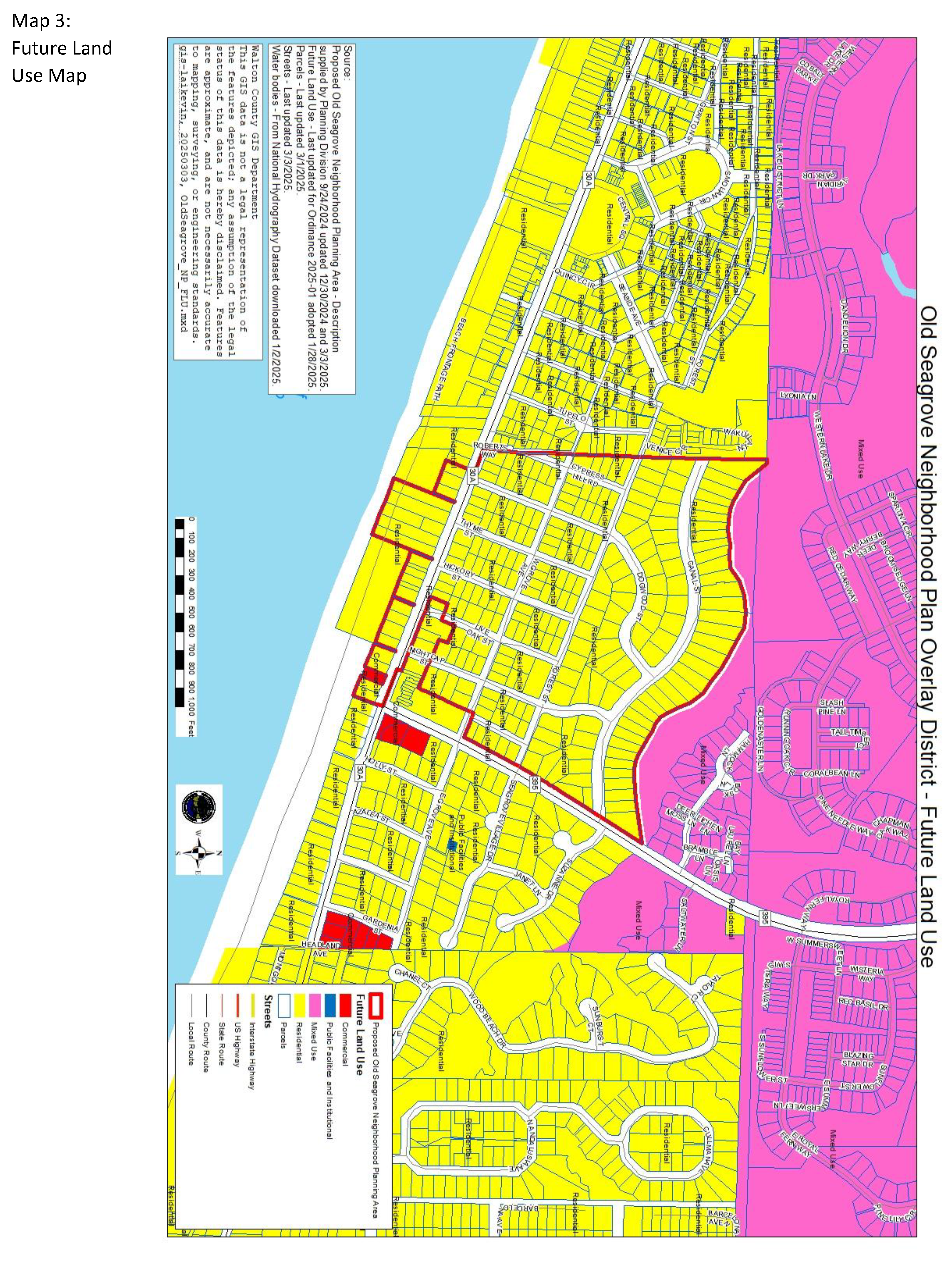 The Old Seagrove Neighborhood Plan shall serve as an overlay to the Official Zoning Map for the properties identified on the Neighborhood Plan Boundary Map included as Map 1. All development standards included within this document shall apply in addition to the development standards found elsewhere in the Land Development Code. Whenever a specific or conflicting standard is included within this neighborhood plan, the neighborhood plan standard shall supersede similar standards found elsewhere in the Land Development Code. Maps 3 and 4 provide the Future Land Use Map Designations and Zoning Map Districts in place at the time of adoption of this Plan.