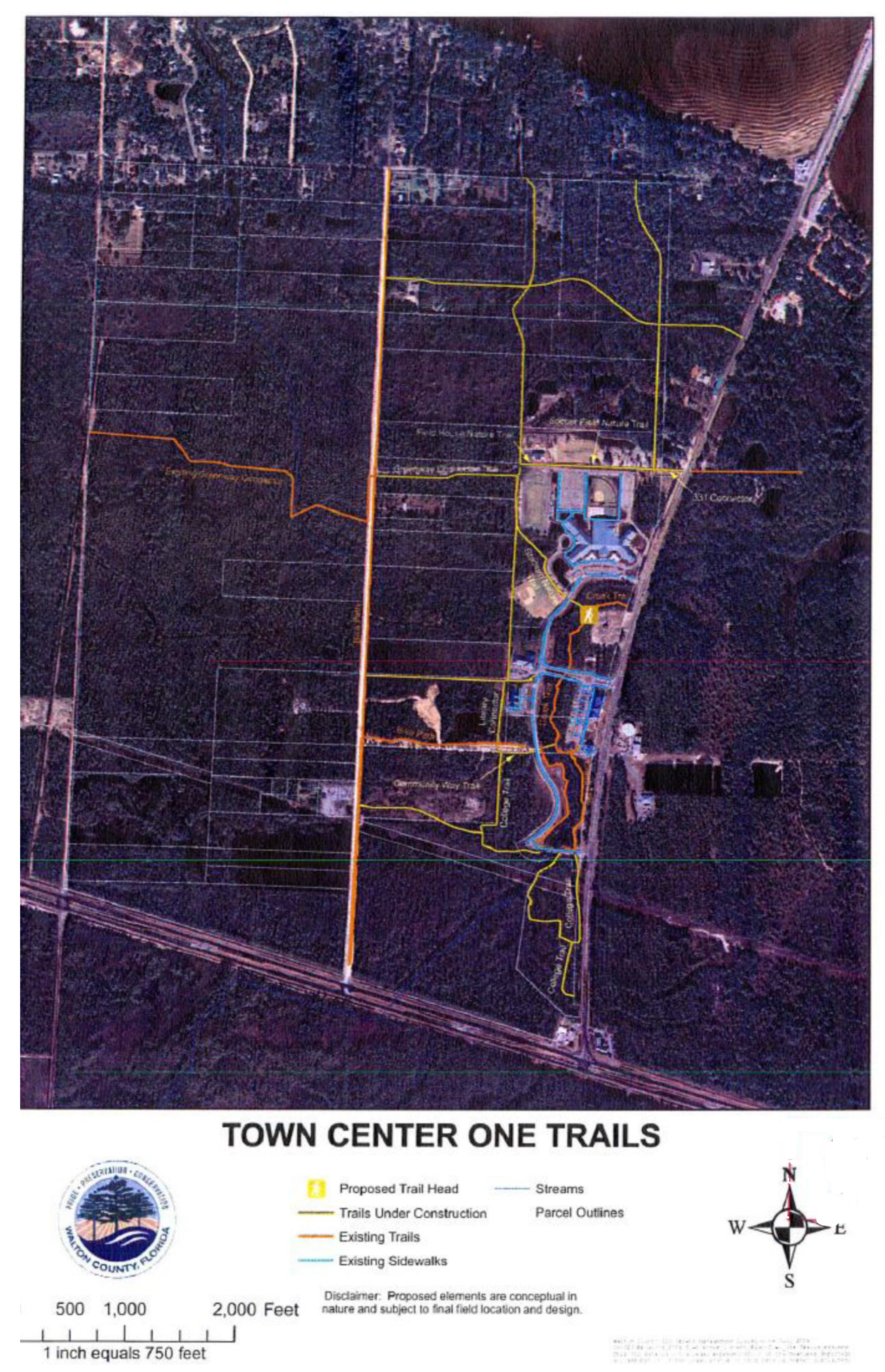The Board of County Commissioners, having denied the sidewalk buyout but understanding that the additional wetland impacts that would come with placement of those portions of the sidewalk, has allowed for the owner to place the portion of sidewalk, that will not be placed internal to the site, external to the development. The owner shall work with the Planning and Public Works departments to determine appropriate locations for the sidewalk that would have been bought out or where the funding could be reallocated.
