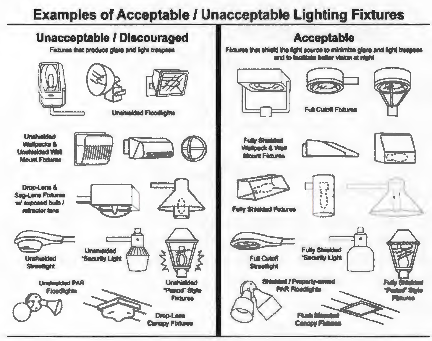 New ornamental street lights must be classified as either IES "Full Cutoff" or IES "Cutoff" as determined by a valid photometric report. This report must be generated for the specified model by a qualified testing lab (testing to IES Standards) and must include a full vertical evaluation through 180 degrees, otherwise that fixture will be unacceptable.