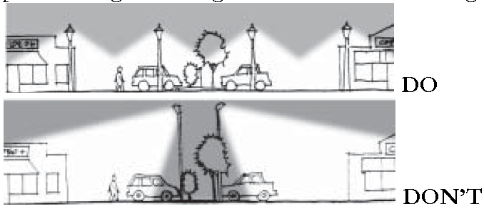 Place light posts and standards so that they do not create hazards for pedestrians or vehicles.
