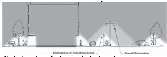Lighting at consistent lumens with a gradual transition to unlighted areas. Highly contrasting pools of light and dark can be temporarily blinding and should be avoided.