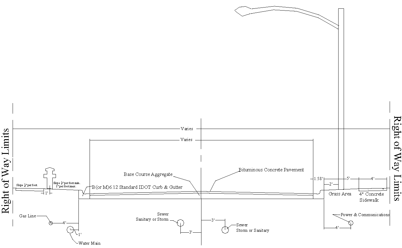 Street surface. Streets shall be surfaced with an aggregate base course, Type B foundation with a minimum thickness of eight inches when thoroughly compacted and with a Bituminous Concrete Surface Course Class I surface of three inches (or compatible PCC pavement structural design) as defined by the Illinois Department of Transportation, or its equivalent, approved by the Governing Body. The City Engineer must approve a structural pavement design for nonresidential streets (e.g., collectors, arterials or truck routes).