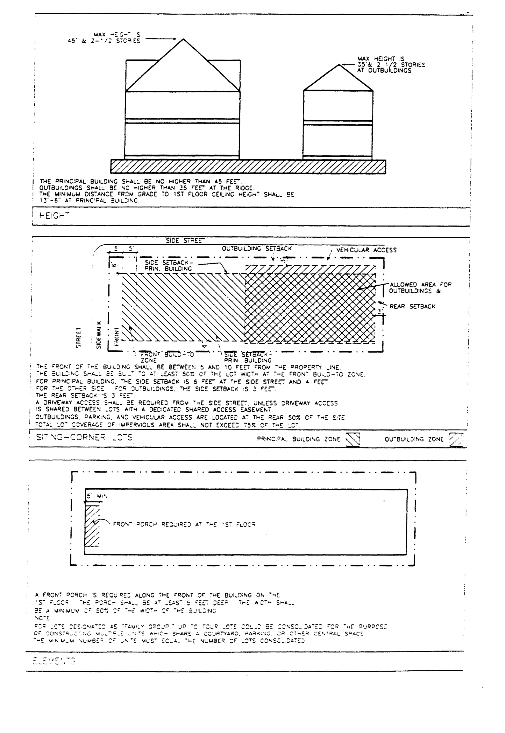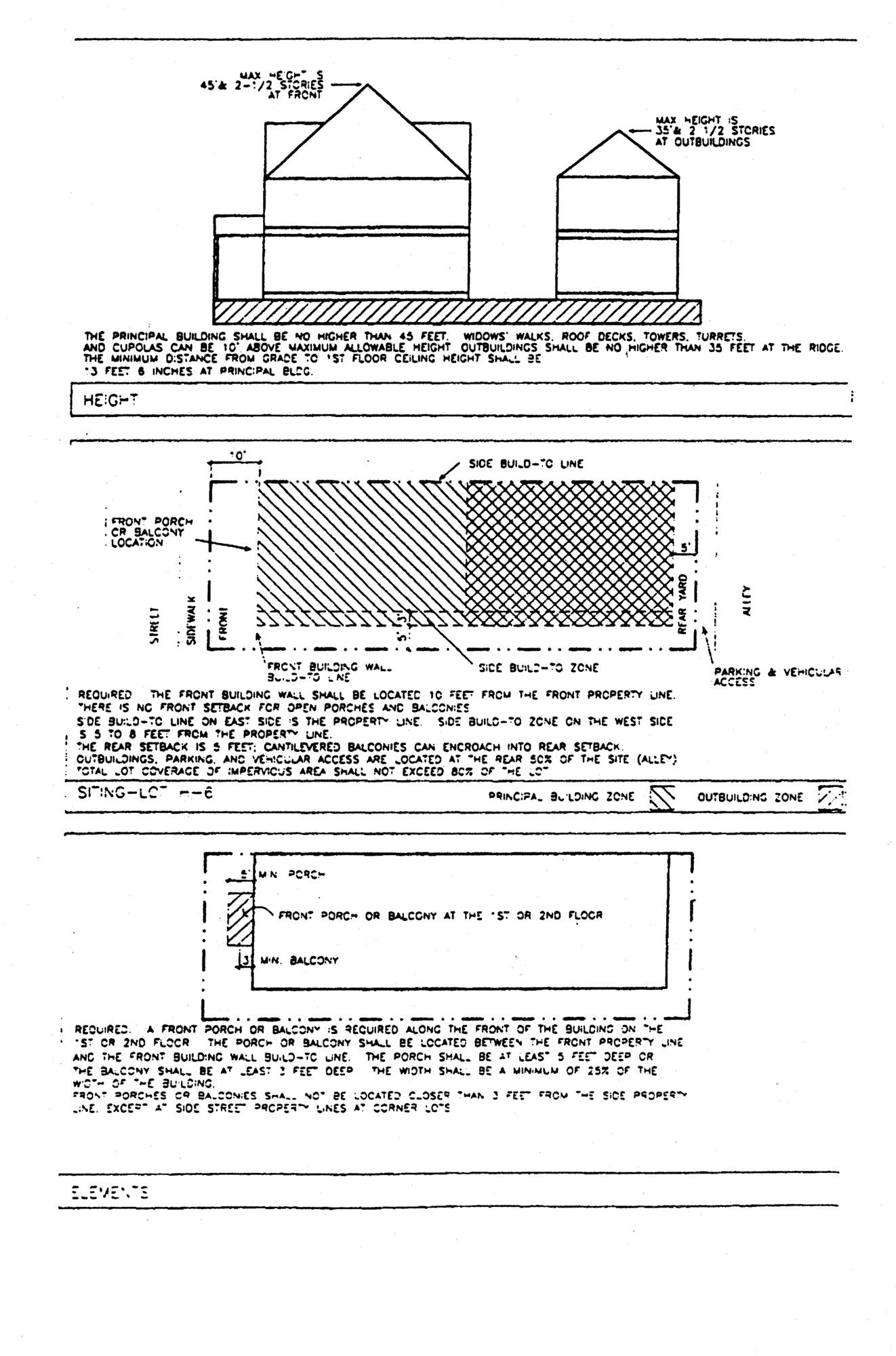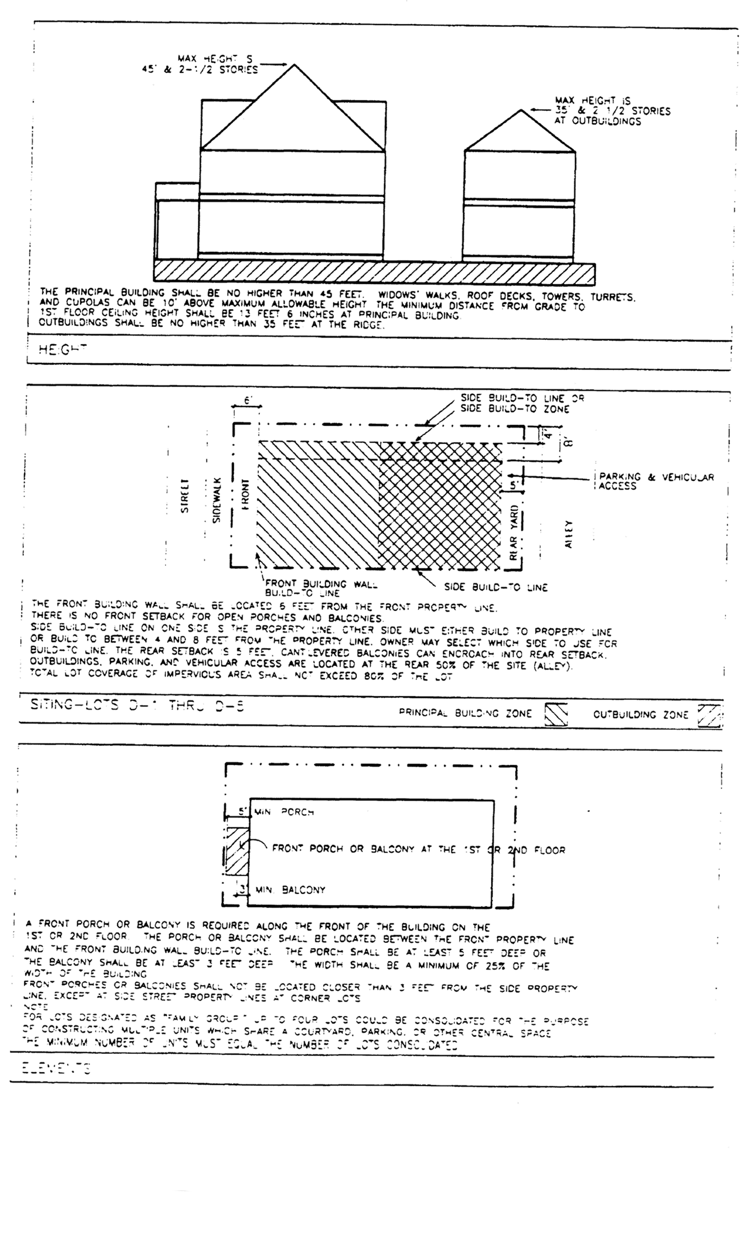 The exterior architectural elements of buildings and structures (i.e., components which define the appearance of a building, such as roofs, windows, porches, modulations, entries, materials, balconies and details). New buildings developed in an established neighborhood with an identifiable character may be viewed as undesirable intrusions unless they respond positively to the architectural characteristic of existing buildings. Therefore, guidelines for architectural elements shall encourage new development in established neighborhoods to complement neighboring buildings and shall consider how design gives a neighborhood its identity. This does not mean that new buildings must excessively mimic older existing buildings. Rather, the guidelines shall require that new buildings use some traditional building concepts or elements. New buildings can successfully relate to older buildings while still looking contemporary, not stifling the designer's creativity and responding to changing societal needs and design opportunities.
