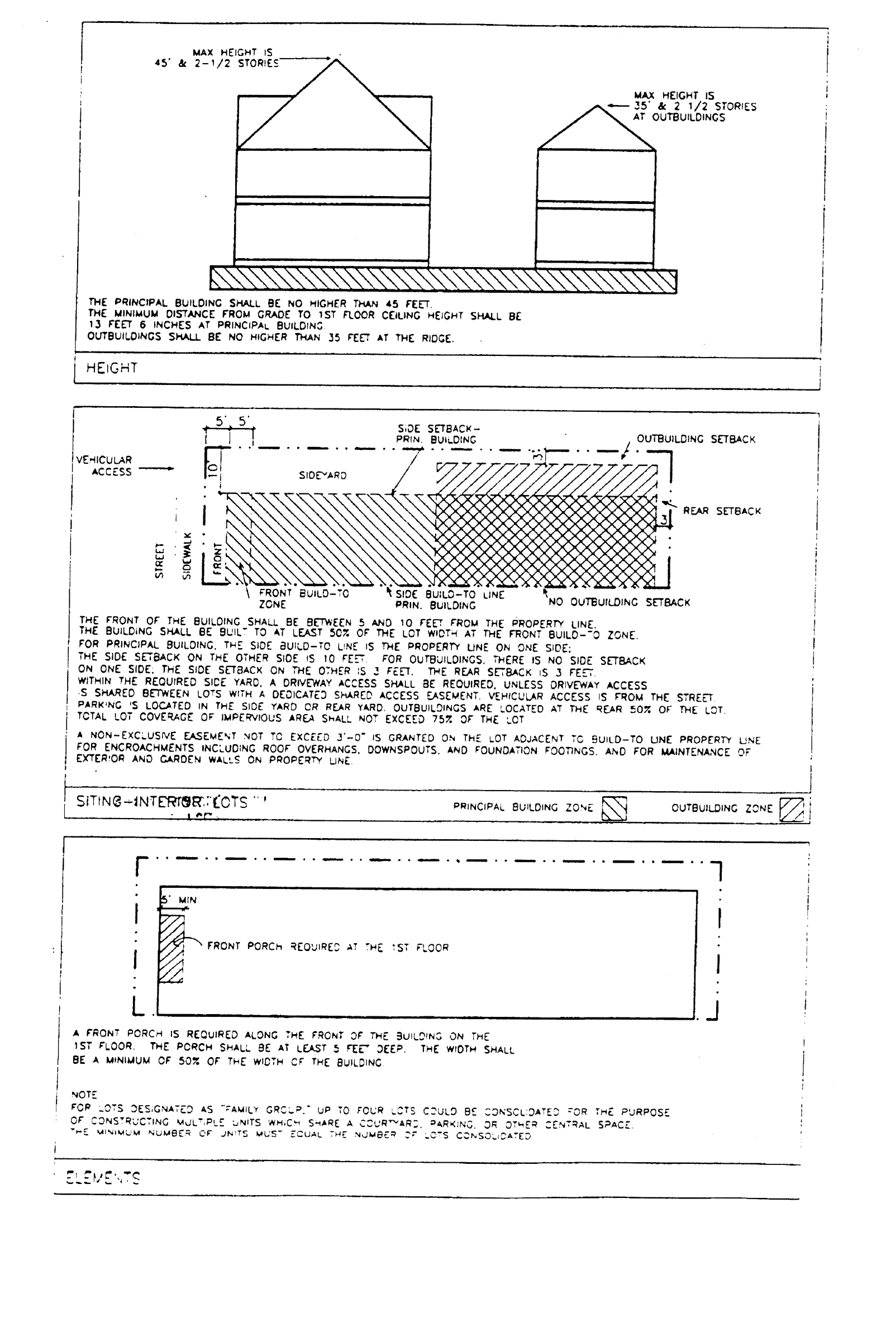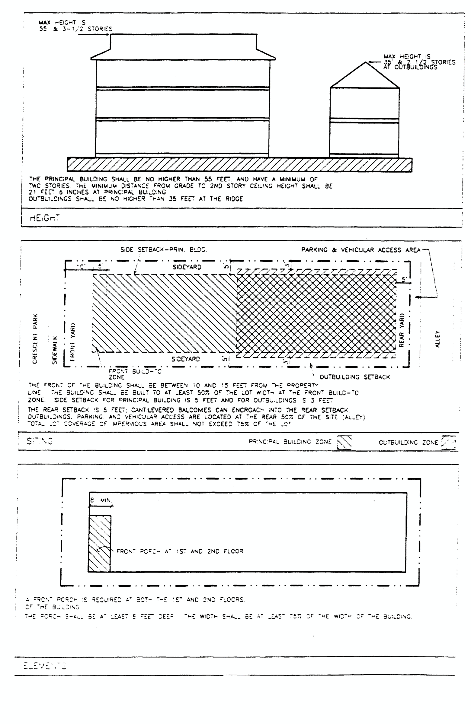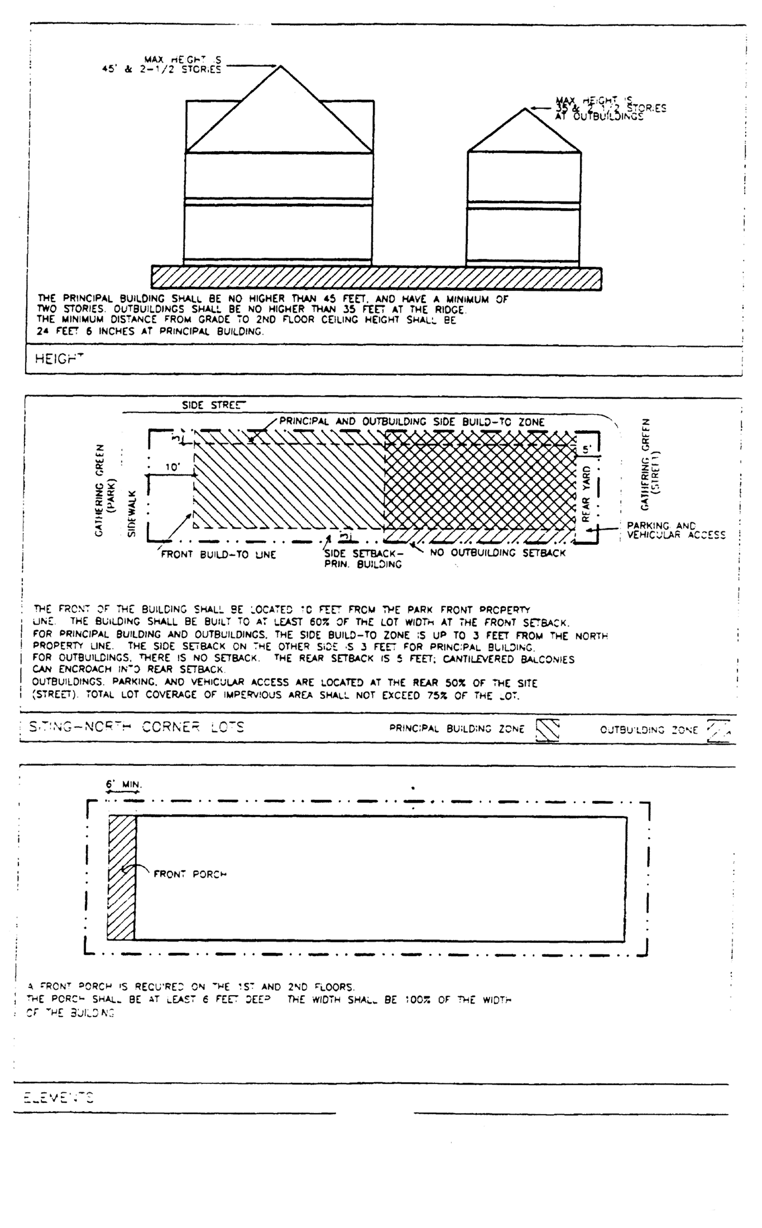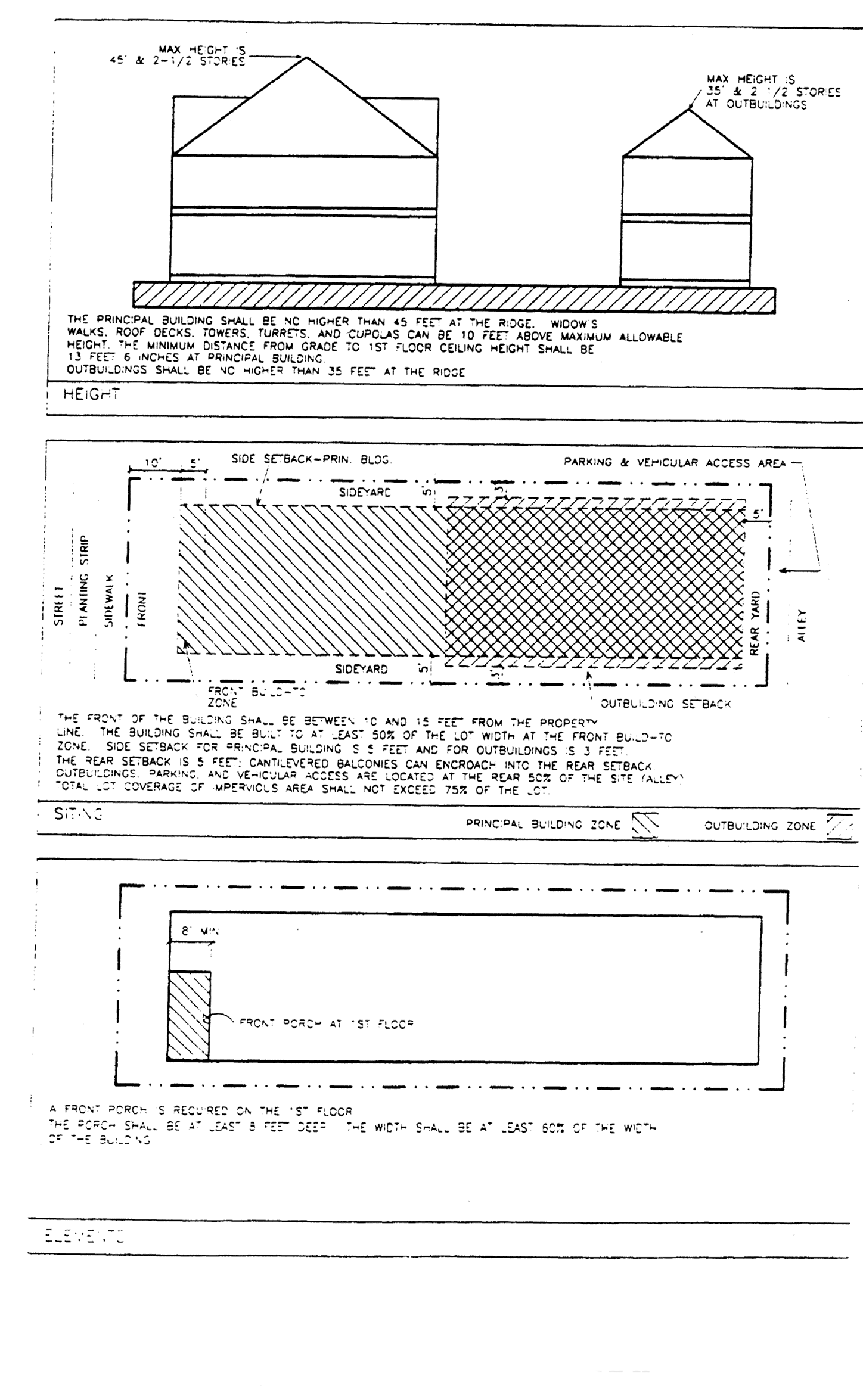 The exterior architectural elements of buildings and structures (i.e., components which define the appearance of a building, such as roofs, windows, porches, modulations, entries, materials, balconies and details). New buildings developed in an established neighborhood with an identifiable character may be viewed as undesirable intrusions unless they respond positively to the architectural characteristic of existing buildings. Therefore, guidelines for architectural elements shall encourage new development in established neighborhoods to complement neighboring buildings and shall consider how design gives a neighborhood its identity. This does not mean that new buildings must excessively mimic older existing buildings. Rather, the guidelines shall require that new buildings use some traditional building concepts or elements. New buildings can successfully relate to older buildings while still looking contemporary, not stifling the designer's creativity and responding to changing societal needs and design opportunities.