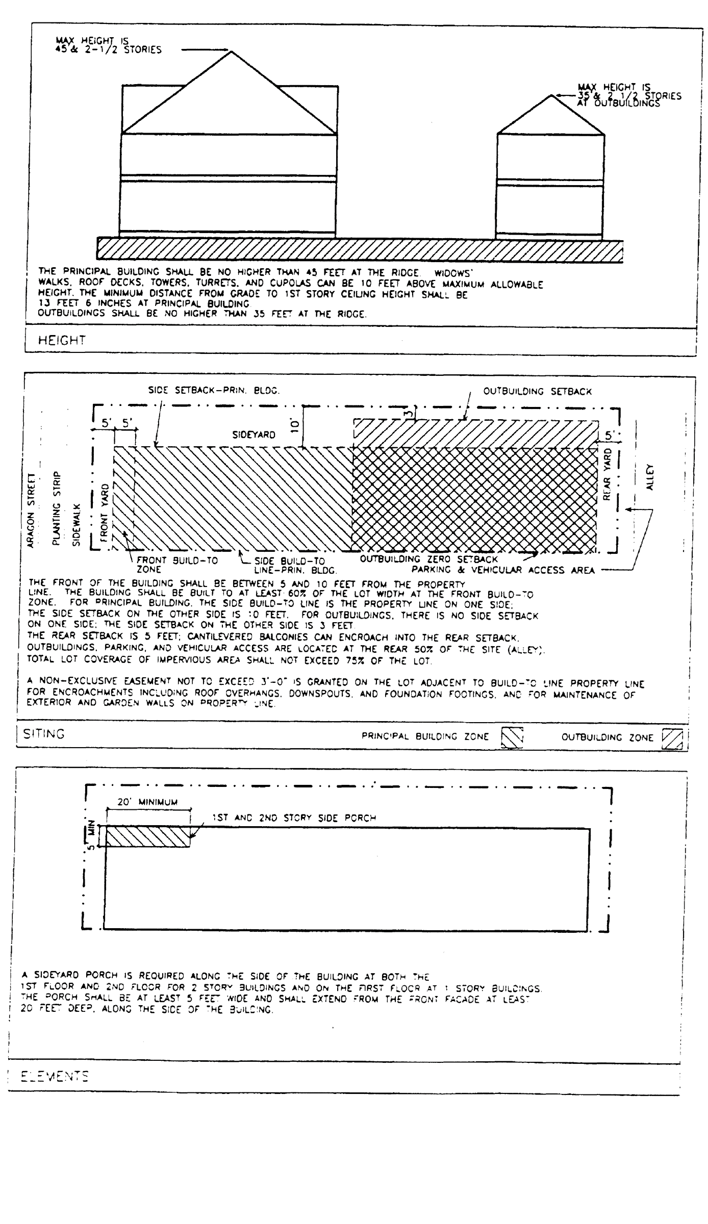 The exterior architectural elements of buildings and structures (i.e., components which define the appearance of a building, such as roofs, windows, porches, modulations, entries, materials, balconies and details). New buildings developed in an established neighborhood with an identifiable character may be viewed as undesirable intrusions unless they respond positively to the architectural characteristic of existing buildings. Therefore, guidelines for architectural elements encourage new development in established neighborhoods to complement neighboring buildings and consider how design gives a neighborhood its identity. This does not mean that new buildings must excessively mimic older existing buildings. Rather, the guidelines suggest that new buildings use some traditional building concepts or elements. New buildings can successfully relate to older buildings while still looking contemporary, not stifling the designer's creativity and responding to changing societal needs and design opportunities.