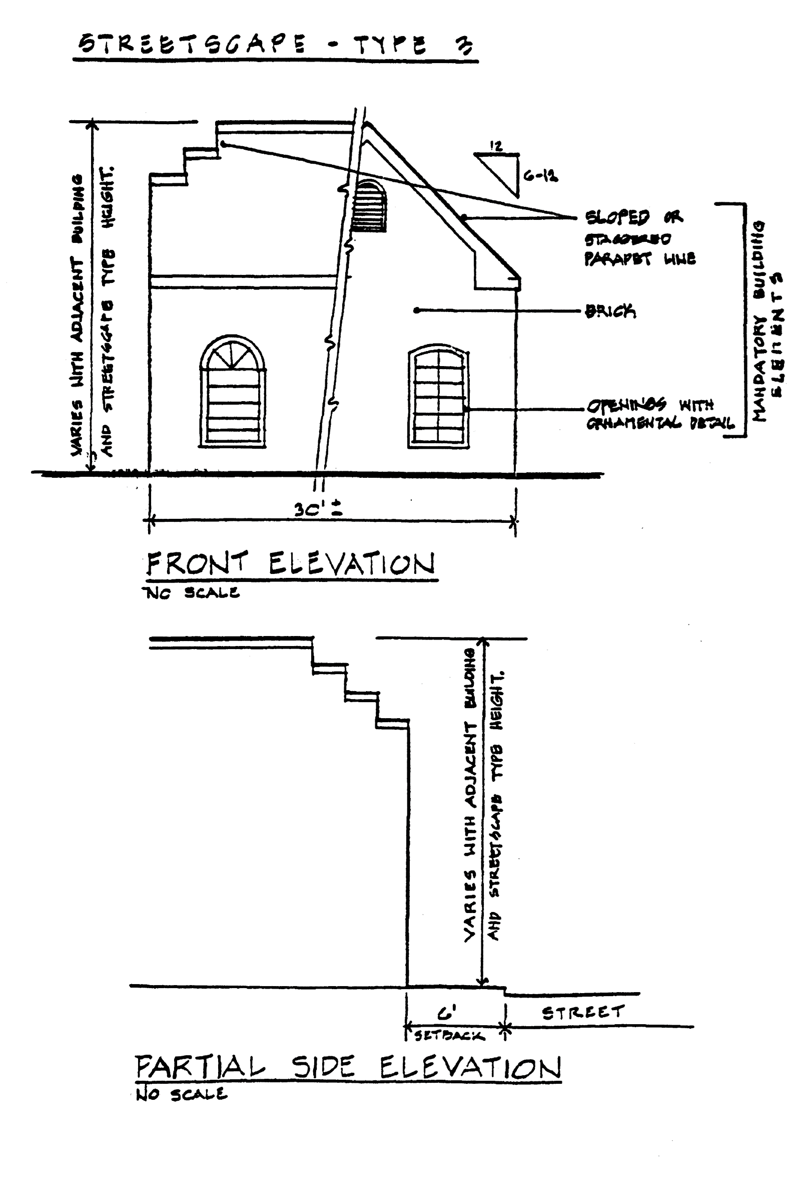 The presence and appearance of structured parking garages and their entrances shall be minimized so they do not dominate the street frontage. Ramps shall be visually screened from streets and adjacent residential zoning districts and oriented towards the interior of the lot within a project where possible. Ramps profiles shall be hidden on the exterior elevations. Roof top parking shall be visually screened with articulated parapet walls or other architectural treatment. Exterior lighting shall utilize fixtures provided with cut off shielding in order to eliminate glare and spillage onto adjacent properties and roadways. The openings of the garage shall be designed in a manner that obscures parked vehicles. Decorative architectural elements on the ground floor level shall be designed to accommodate the pedestrian scale. Parking levels above the ground floor shall maintain the same vertical and horizontal articulation or rhythm and incremental appearance established on the ground floor.