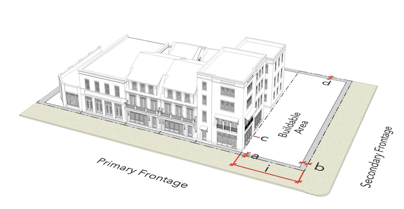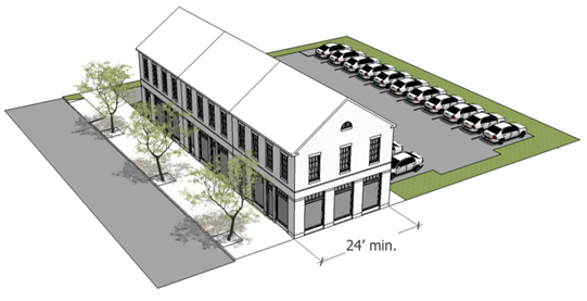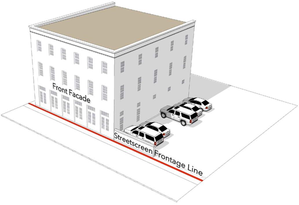 Locate surface parking at the rear or side of the zoning lot.