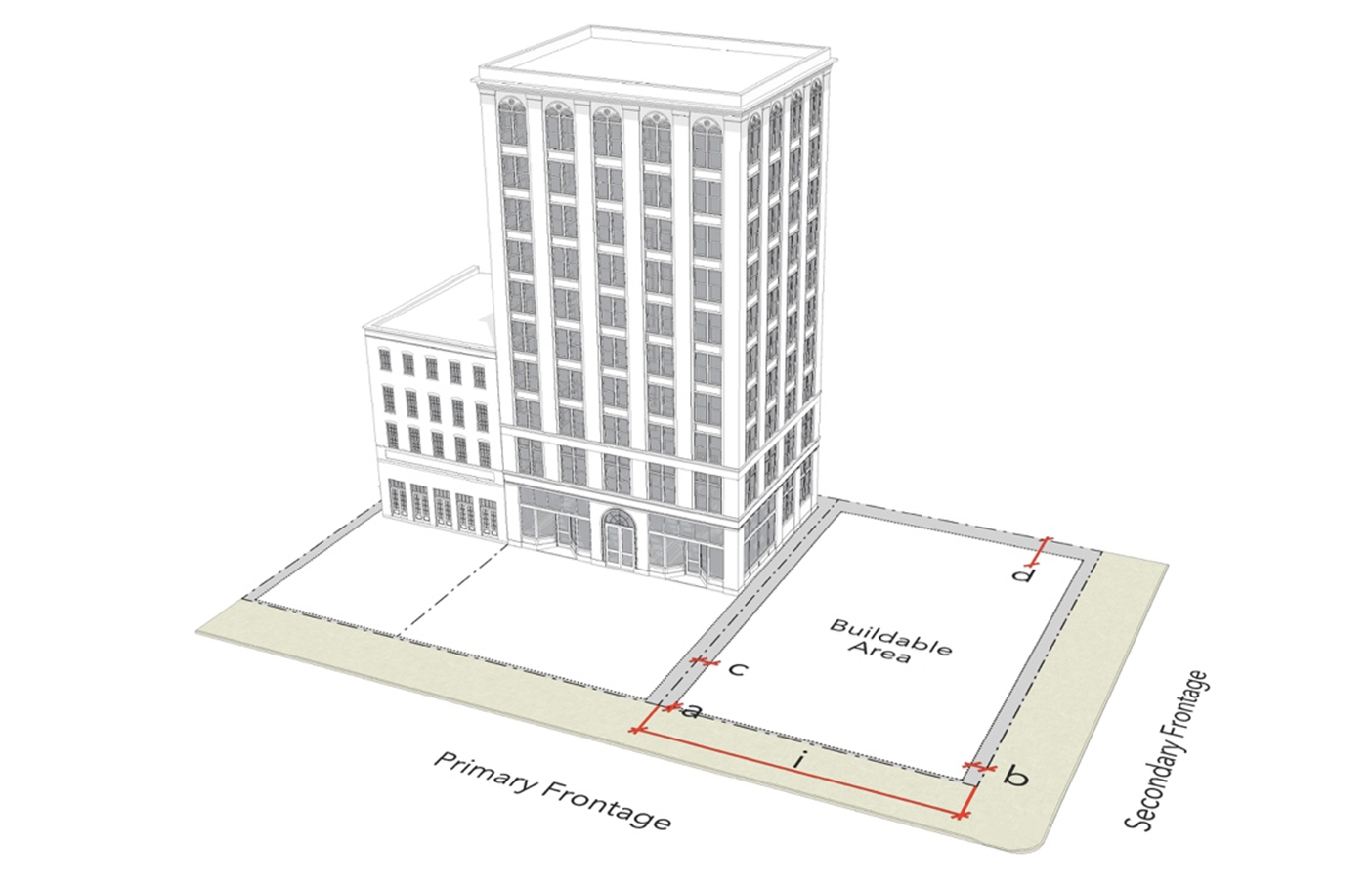 Stepping back upper stories (generally above the third or fourth floor).