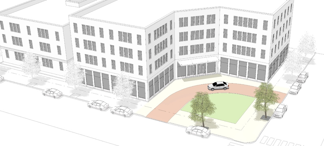 Architectural features should be incorporated into the facade to mitigate the building's mass and bulk and along portions of the building adjacent to street rights-of-way.