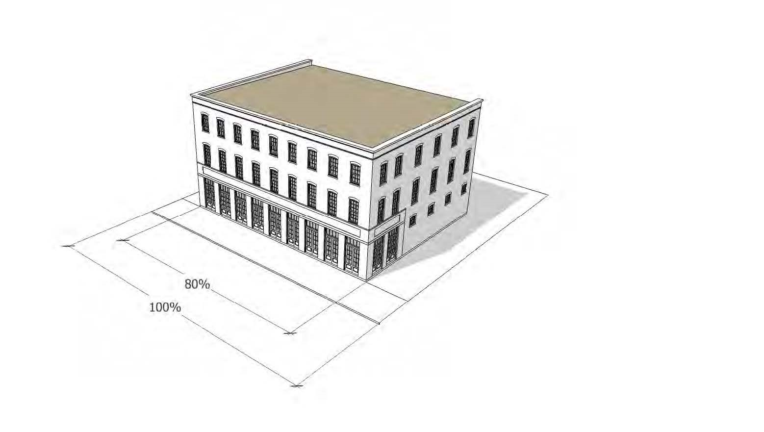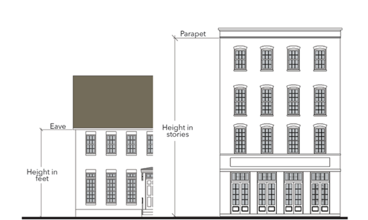 The design of new buildings shall incorporate stepping back upper stories (generally above the third or fourth floor).