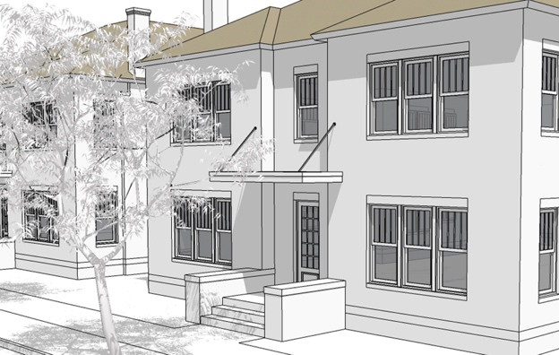 Building entrances shall be clearly visible from the street. Using entries that are visible from the street makes a project more approachable and creates a sense of association with neighboring structures.