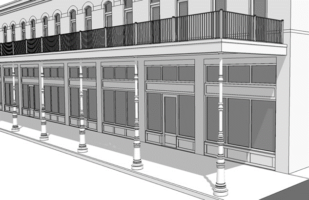 New development should be sited and designed to encourage human activity on the street. To accomplish this end, entrances, porches, balconies, decks, seating and other elements can be designed to promote use of the street front and provide places for human interaction. For example, for commercial developments such elements can include shop front windows, outdoor seating/dining, rooftop decks, balconies, and canopies that protect pedestrians from the elements.