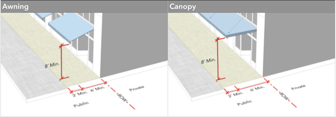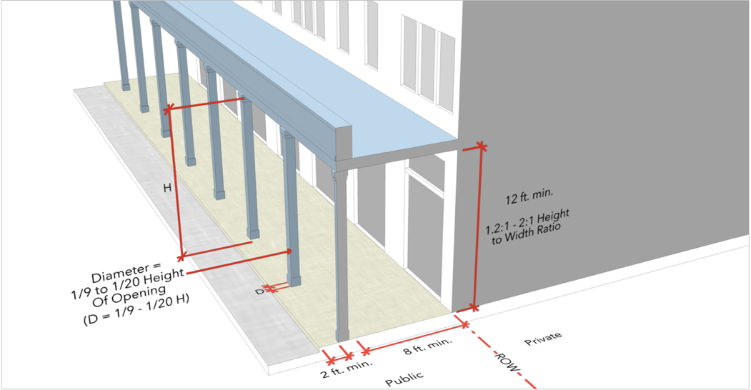 The design of new buildings shall incorporate porches or covered entries that offer pedestrian weather protection such as canopies, awnings, arcades, or other similar elements wide enough to protect at least one person.