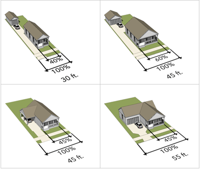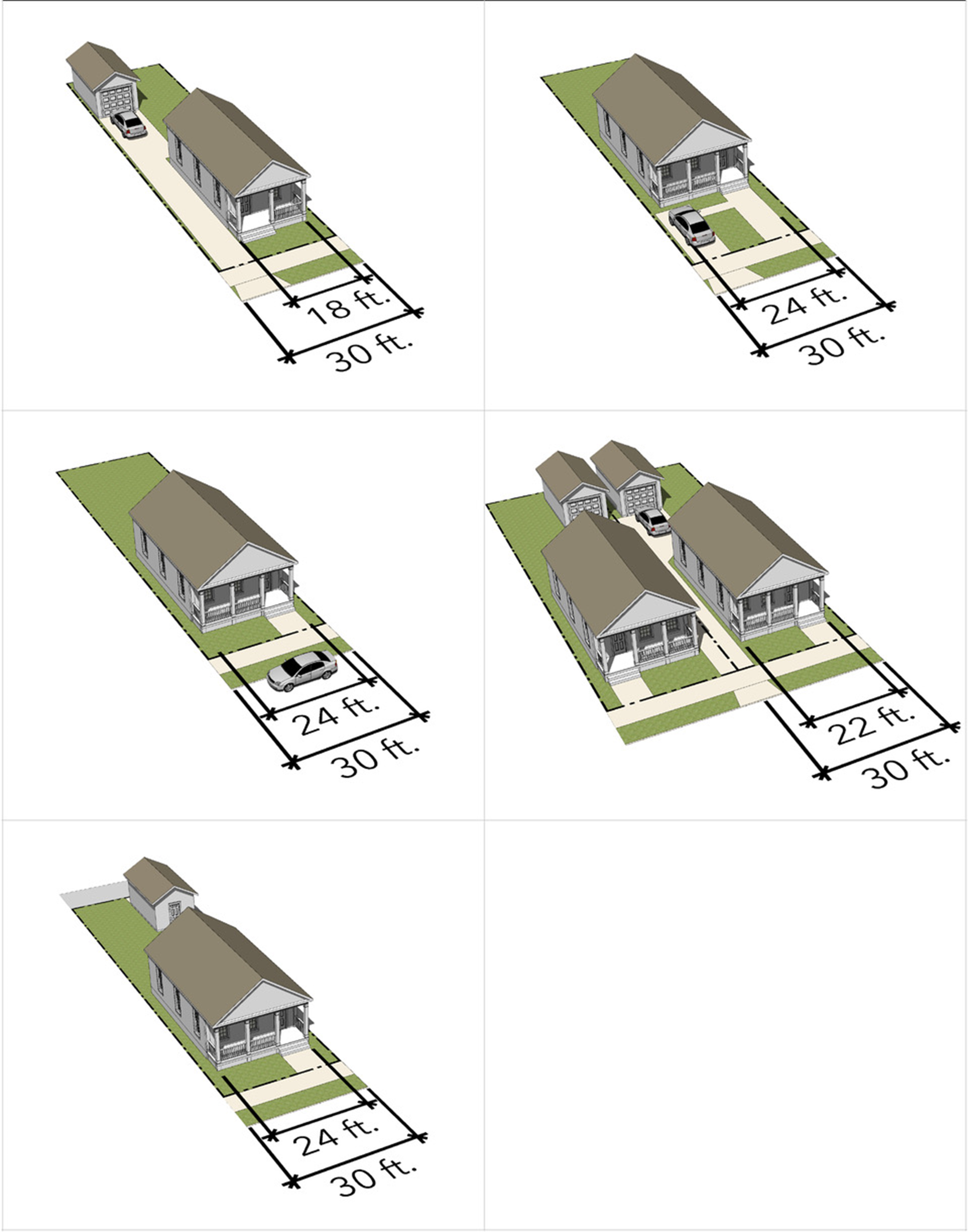 Locate driveways so they are visually less dominant.