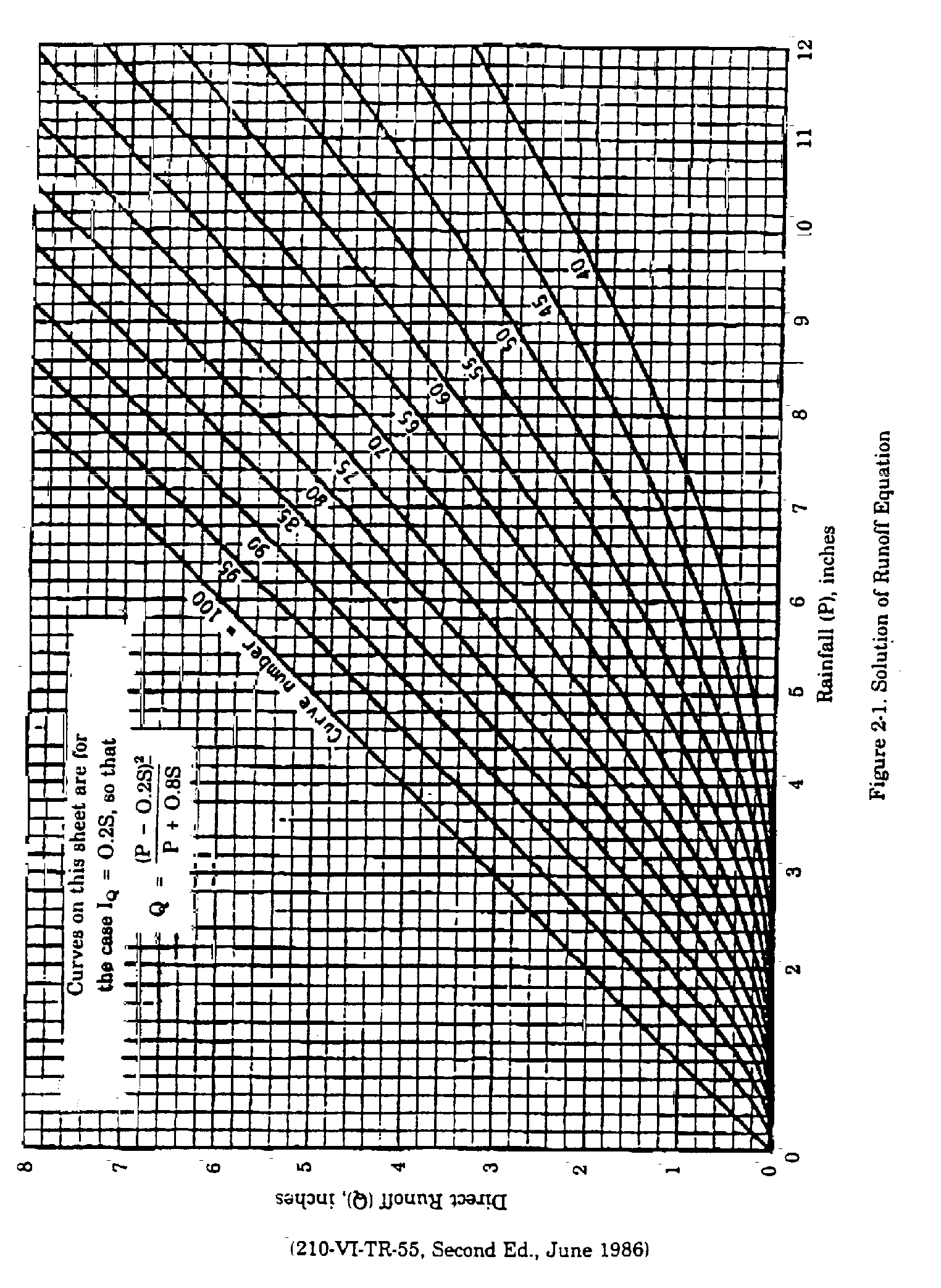 Storm event rainfall runoff. Use the SCS Runoff Curve Number Method to determine rainfall runoff depth. See Figure 2-1 and Tables 2-2a through 2-2c (attached) from TR 55. Soil type information is available from the SCS Peoria County Soil Survey, 1992.