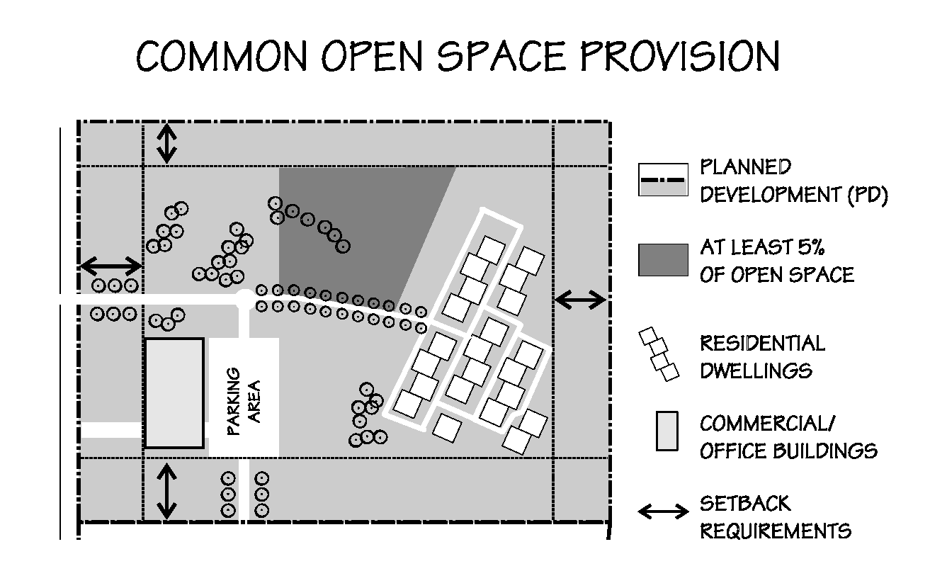Common Open Space. At least five (5) percent of the net area of the development shall be provided as common open space, above and beyond the requirements provided in the underlying district.