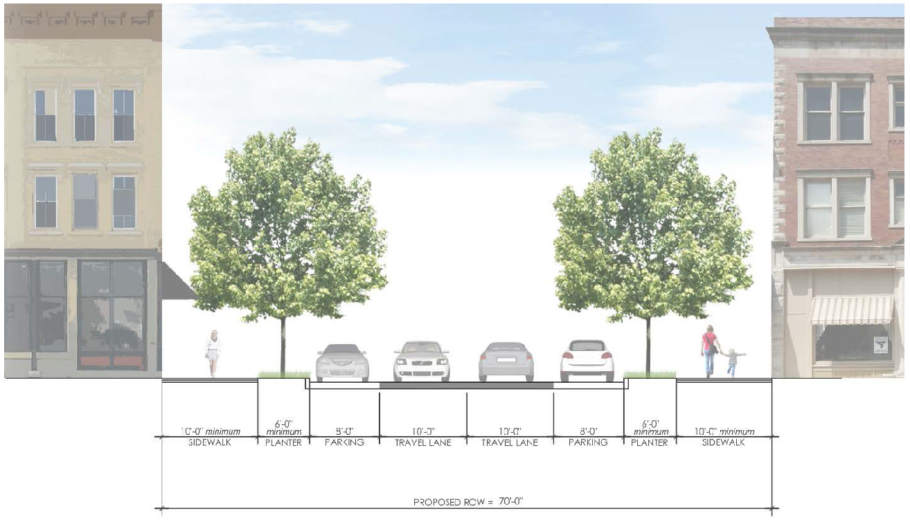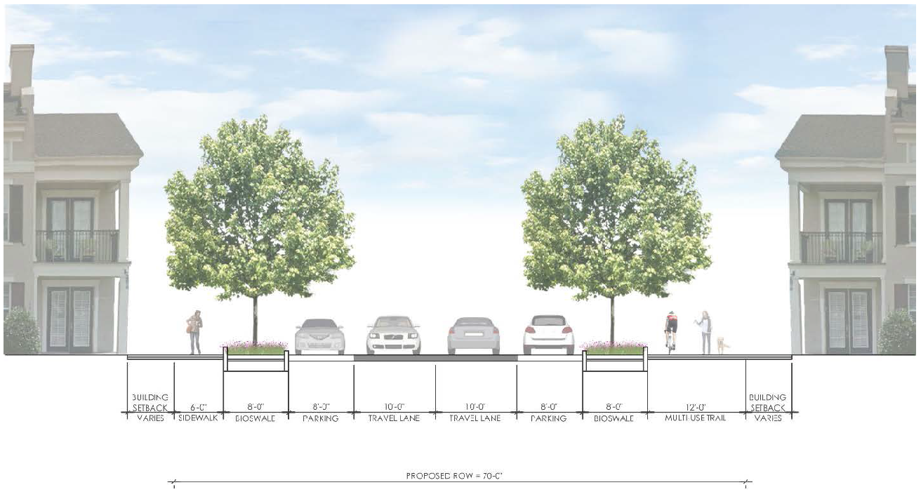 The intent of the block and access standards is to provide a well-connected street network. Large blocks with limited connectivity discourage walking, contribute to street congestion, and add driving distance that can negatively impact emergency services. New streets should also be designed to consider the future development identified in the Perry Future Land Use Plan.