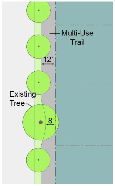 Where the block pattern is interrupted by public parklands including greenways that are open and accessible to the public, pedestrian access points must be provided with a minimum spacing equal to half of the maximum block perimeter.