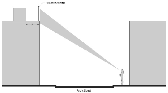 Flat roofs must be enclosed by parapets a minimum of 42 inches high, or as required to conceal mechanical equipment by Section 87.5.4.