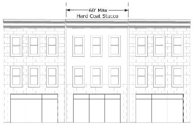 Window frames must be recessed a minimum of 1.5 inches from the exterior façade.