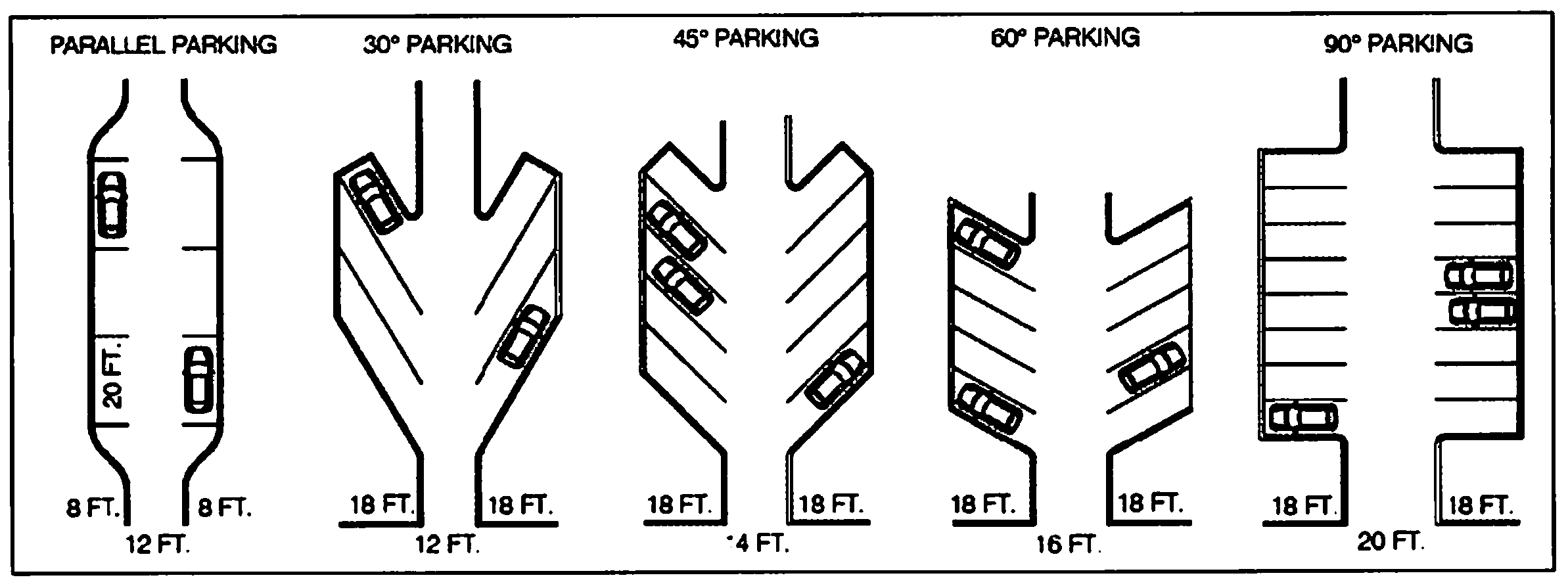 Parking plans that use right angle or parallel parking are preferred. Internal circulation roads that provide access to parking lots should only have parallel parking spaces, if any. Where angle parking is proposed, one-way drives should be provided.
