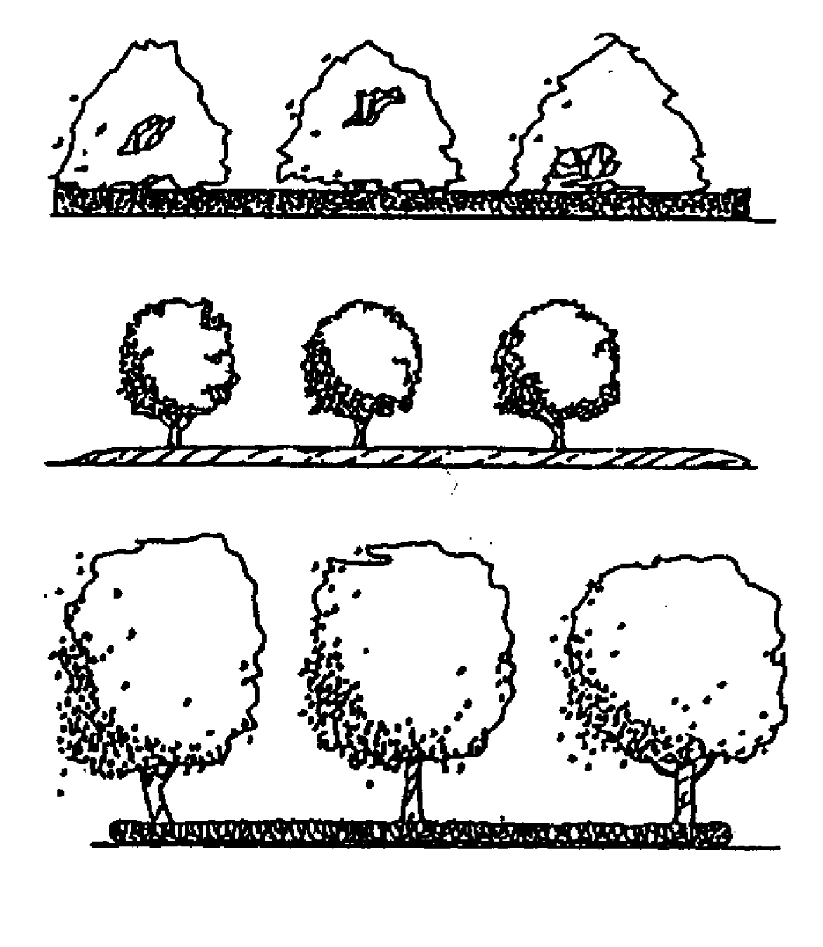 Compliance of planted vegetative screens or natural vegetation will be judged on the basis of the average mature height and density of foliage of the subject species, or field observation of existing vegetation. At maturity, the portion of intermittent visual obstructions should not contain any completely unobstructed openings more than ten feet wide. The zone of intermittent visual obstruction may contain deciduous plants.