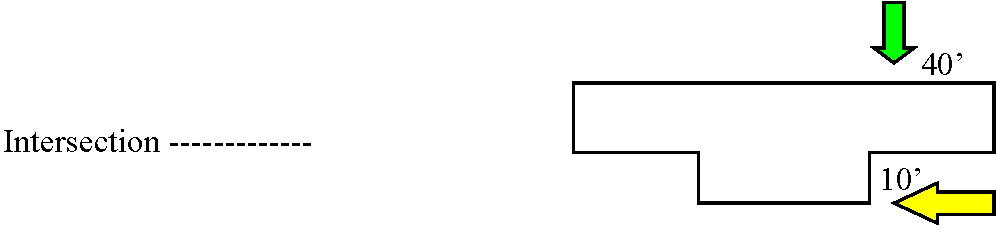 1002.3 Corner triangle: The triangle area created by a line connecting points on the front and side for lines at a distance (as indicated below) from the intersection of said lines or the extension of said lines: