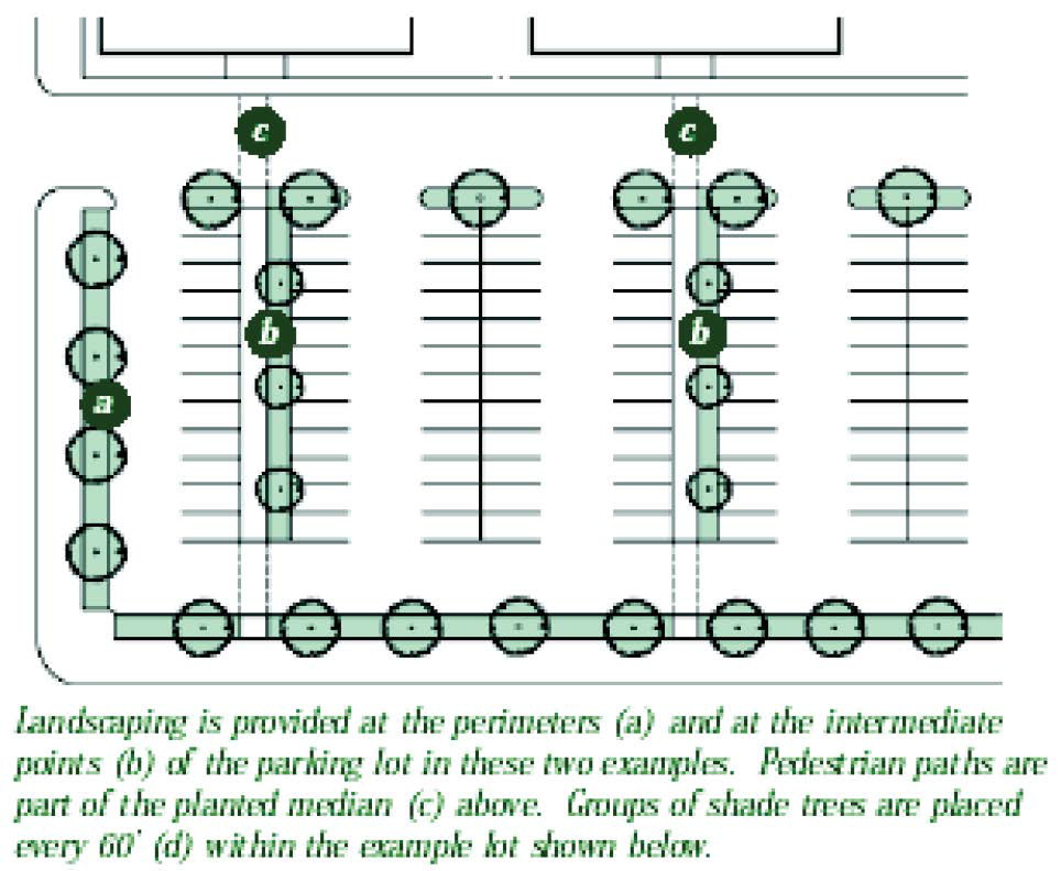 412.5.4. Parking. All parking surfaces for clients, customers, and employees located in the Gateway Overlay District must be paved. Off street parking facilities shall be properly graded for drainage to prevent damage to abutting property and/or public streets and alleys. All surface material for parking spaces and their corresponding access drives shall consist of a suitable paving material to prevent the exposure of subsoil. Suitable paving material for parking lots include asphalt, concrete, porous paving blocks or any other maintenance material approved by the administrator that will not result in substantial maintenance problems. Parking areas that are located behind the building and are only used for storage of materials and equipment are not required to be paved as long as it cannot be seem from the road. Alternative paving materials will be considered only if the material exhibits equivalent load bearing and wear characteristics as concrete or bituminous asphalt. For a paving space to be considered pervious at least five (5) percent of the parking area must consist of permeable pavement or surface treatment. Stormwater reductions that result from the use of permeable pavement may be considered in any kind of stormwater management plans or requirement for mitigation.