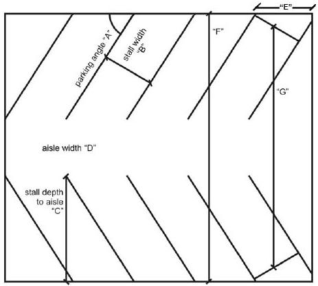 Parking lots are restricted to one drive aisle and two rows of parking stalls between the building and the adjacent street.