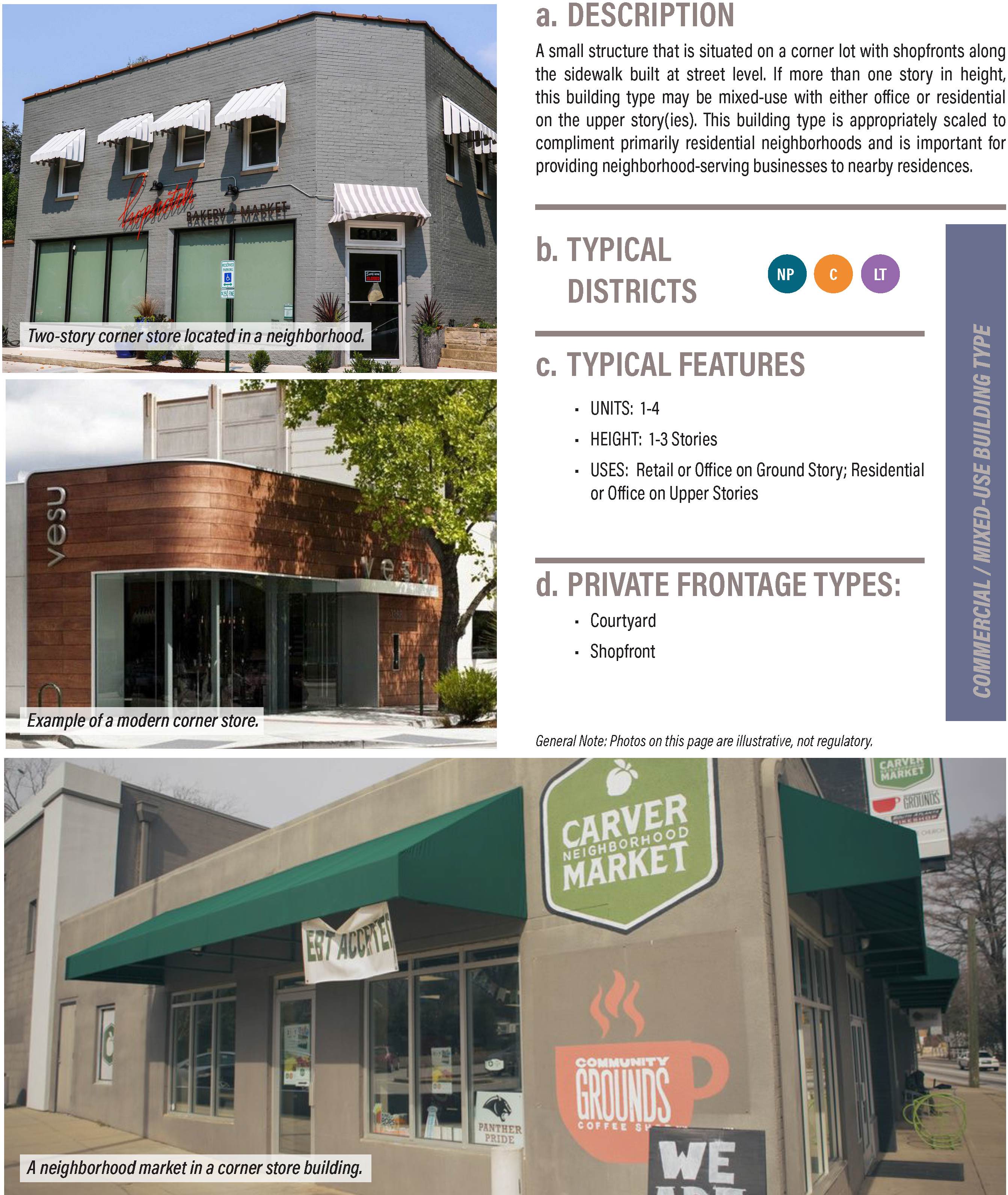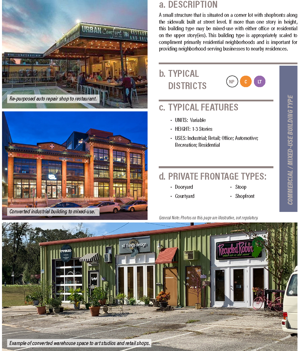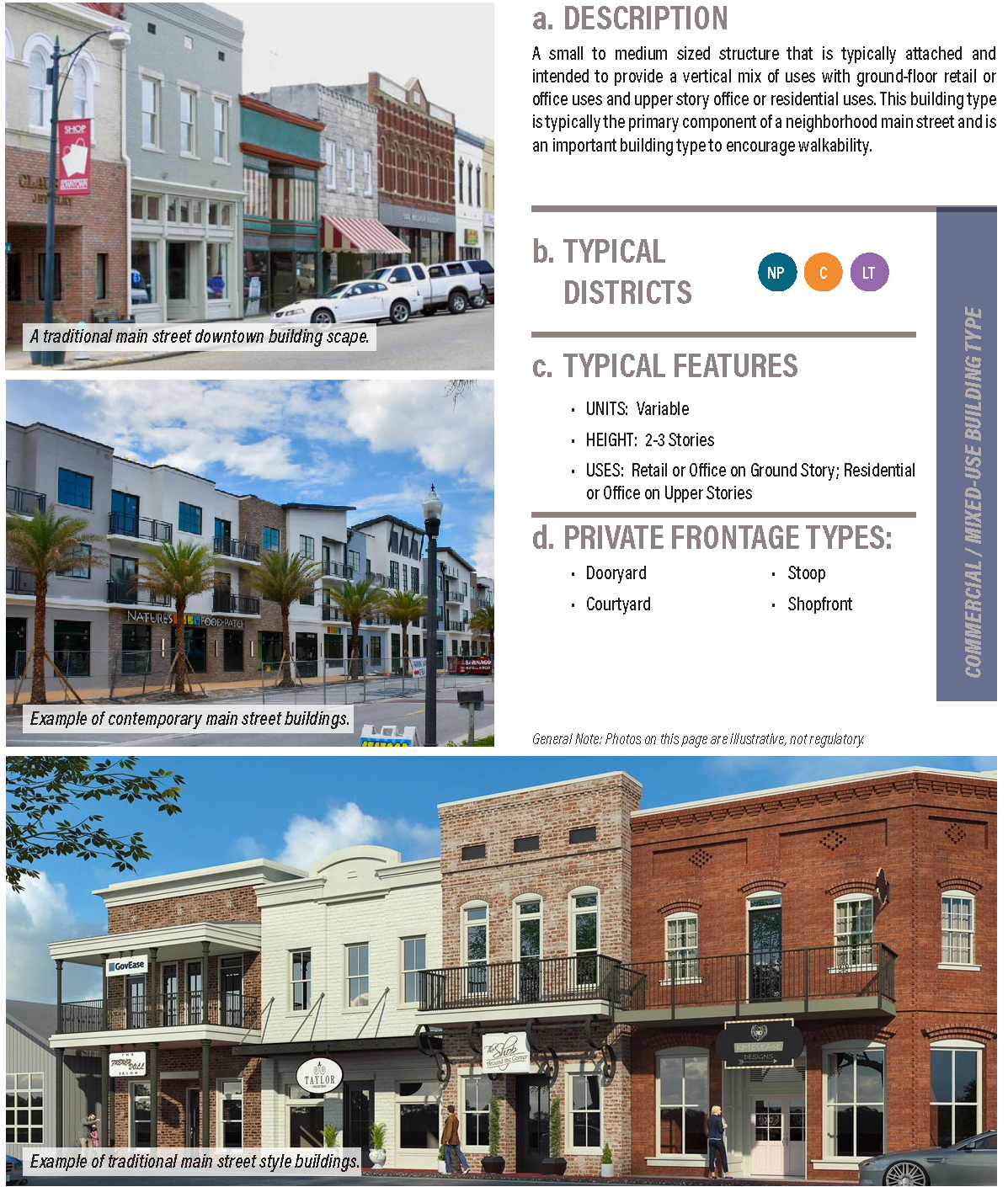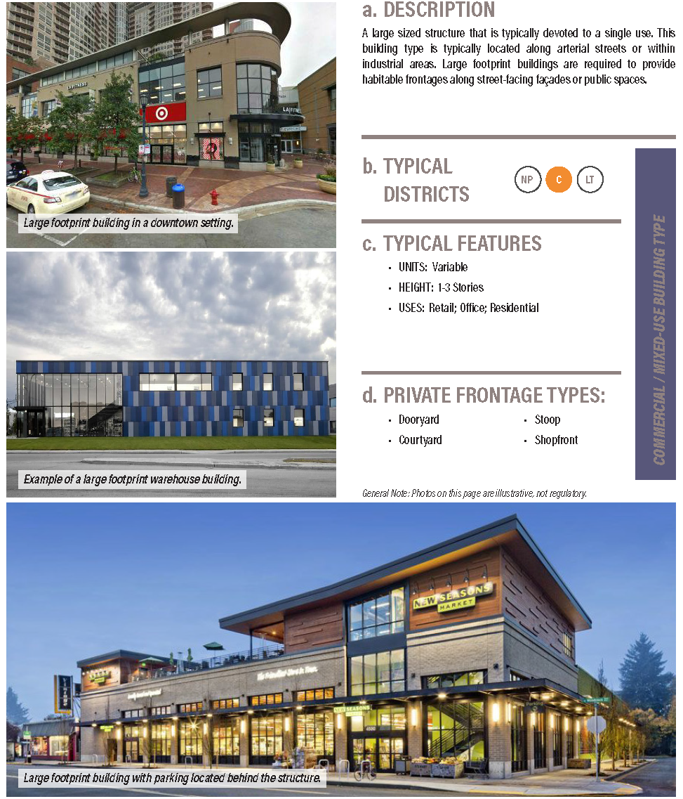 Building types. Appropriate and scaled Building Types are identified for each District. Building Types are intended to provide more predictability of an area's built environment, while also appropriately scaling new development/redevelopment within established neighborhoods. The typical features outlined in this section are intended to generally describe the range in scale and components of each building type. The District Standards and intents established in LFBC Division 4 further define the allowable scale for each building type (i.e. maximum height).
