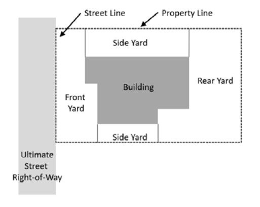 YARD. The area between a building and the property line. See Section 18-1503.7, "Yard Determinations."