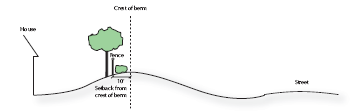 Landscaping and fences shall not be placed on the crest of the berm, but rather on the slope farthest from the right-of-way.