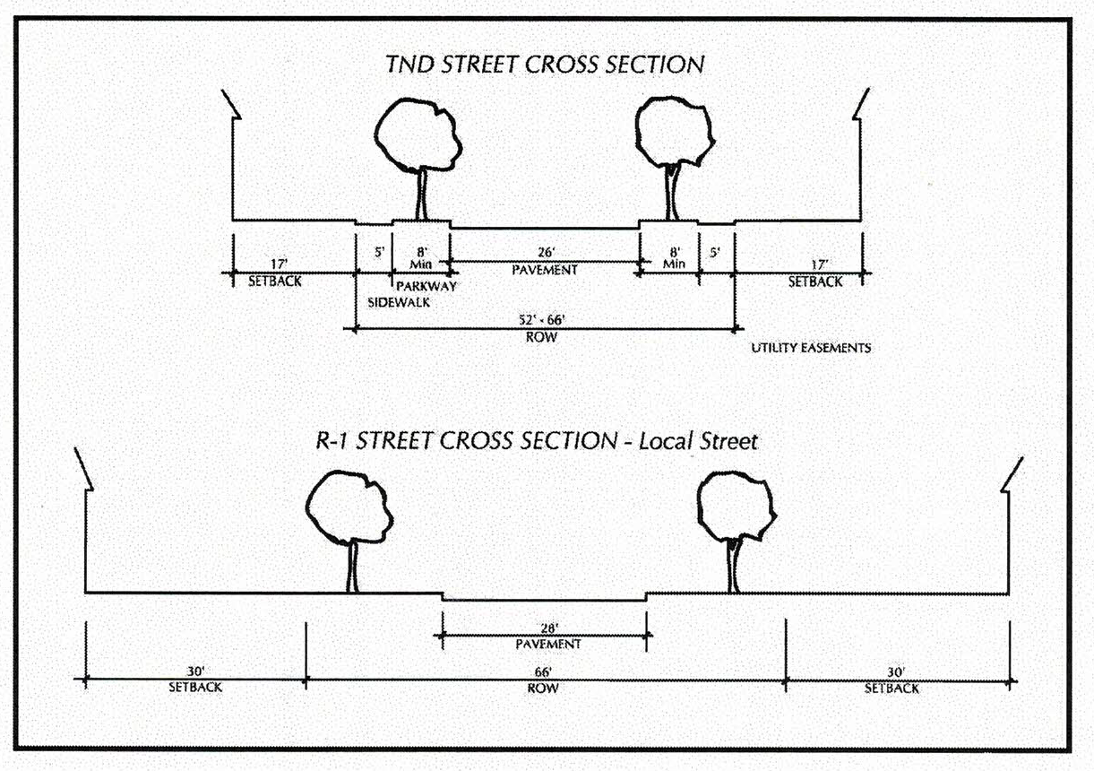 Figure V-3. Comparison of TN District and R-1 Street Cross Sections
