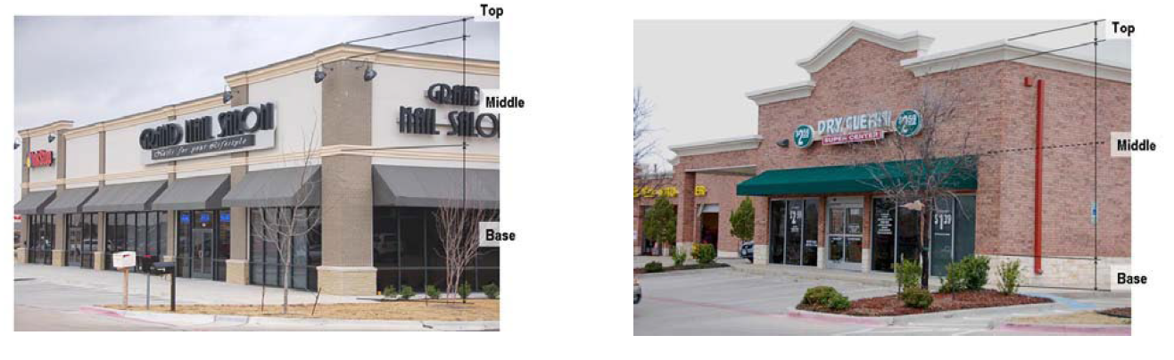 All nonresidential and multifamily buildings shall be designed and constructed in tri-partite architecture so that they have a distinct base, middle and top.