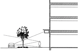 The face of any building fronting on a public right-of-way, as well as the face(s) of the building where the principal entrances are located, shall have a minimum of 20% glazed. Windows must not be false or applied. If the window openings are into the storage area, translucent material must be used.