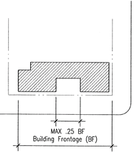 Exterior wall planes should not exceed fifty (50) feet without a facade offset of twelve (12) inches or more;