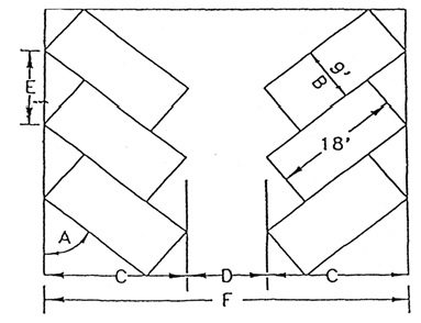 Access aisles for sixty (60) degree angle parking shall be one-way only and shall be a minimum of twenty (20) feet in width. Access aisles for forty-five (45) degree or thirty (30) degree parking shall be one-way only and shall be a minimum of fifteen (15) feet in width.