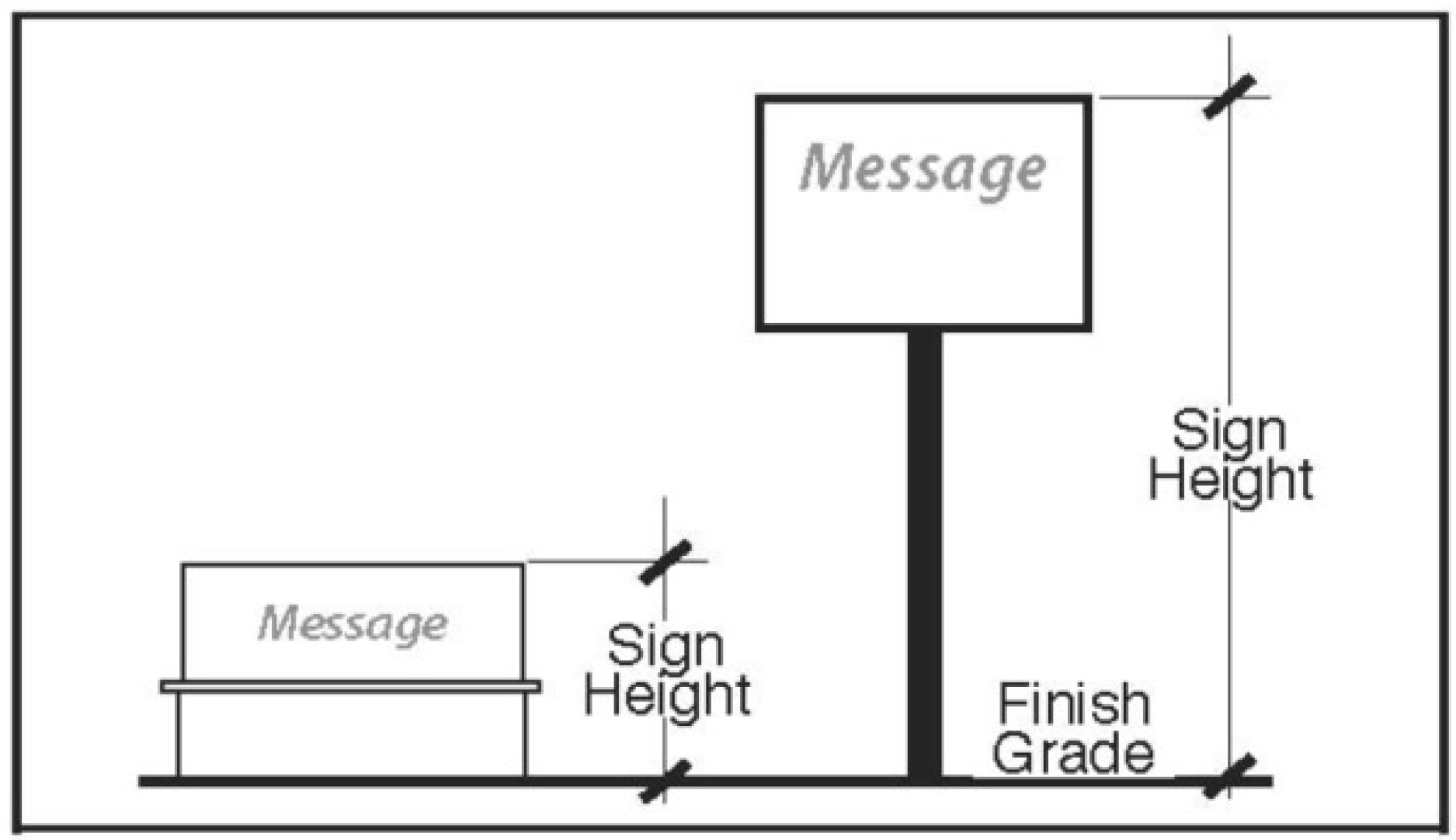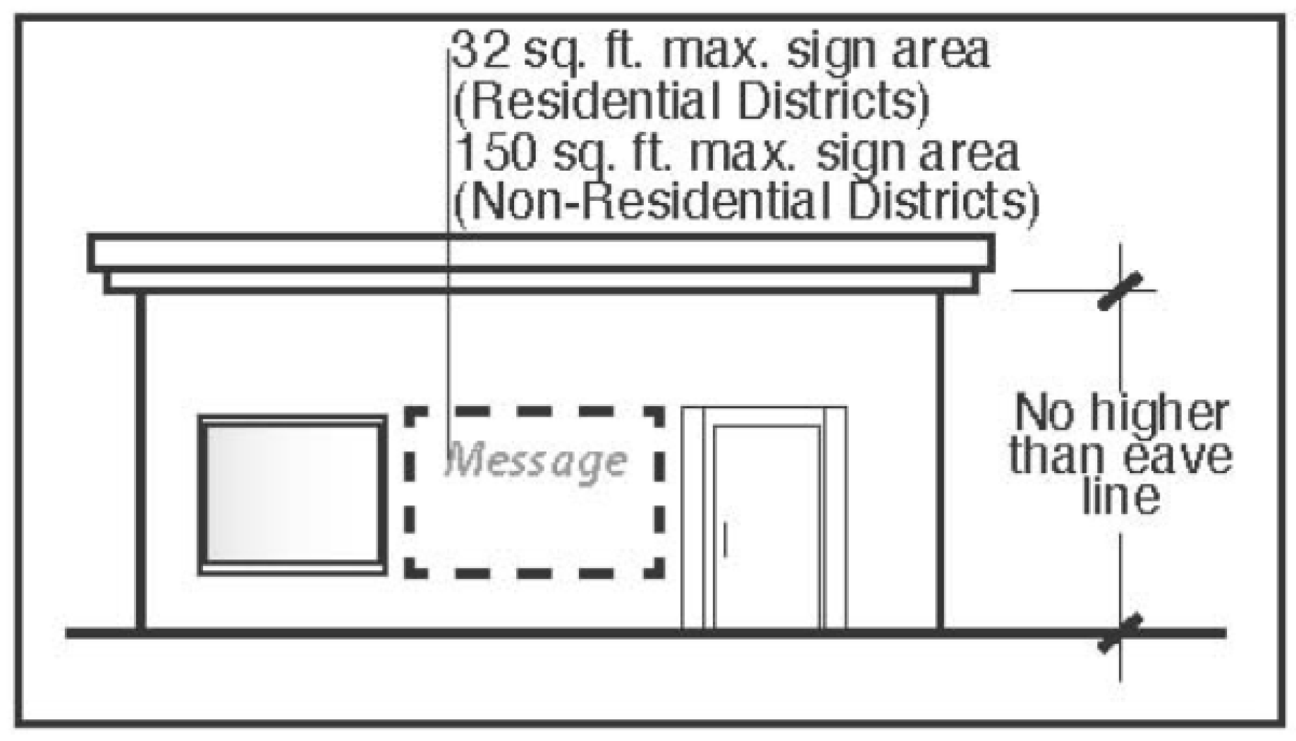 Wall Signs. For the purpose of determining the height of any wall sign, height shall be measured from the finished grade along the building frontage to the highest point of the sign. No portion of a sign may exceed the height of the wall to which it is attached nor extend over windows.