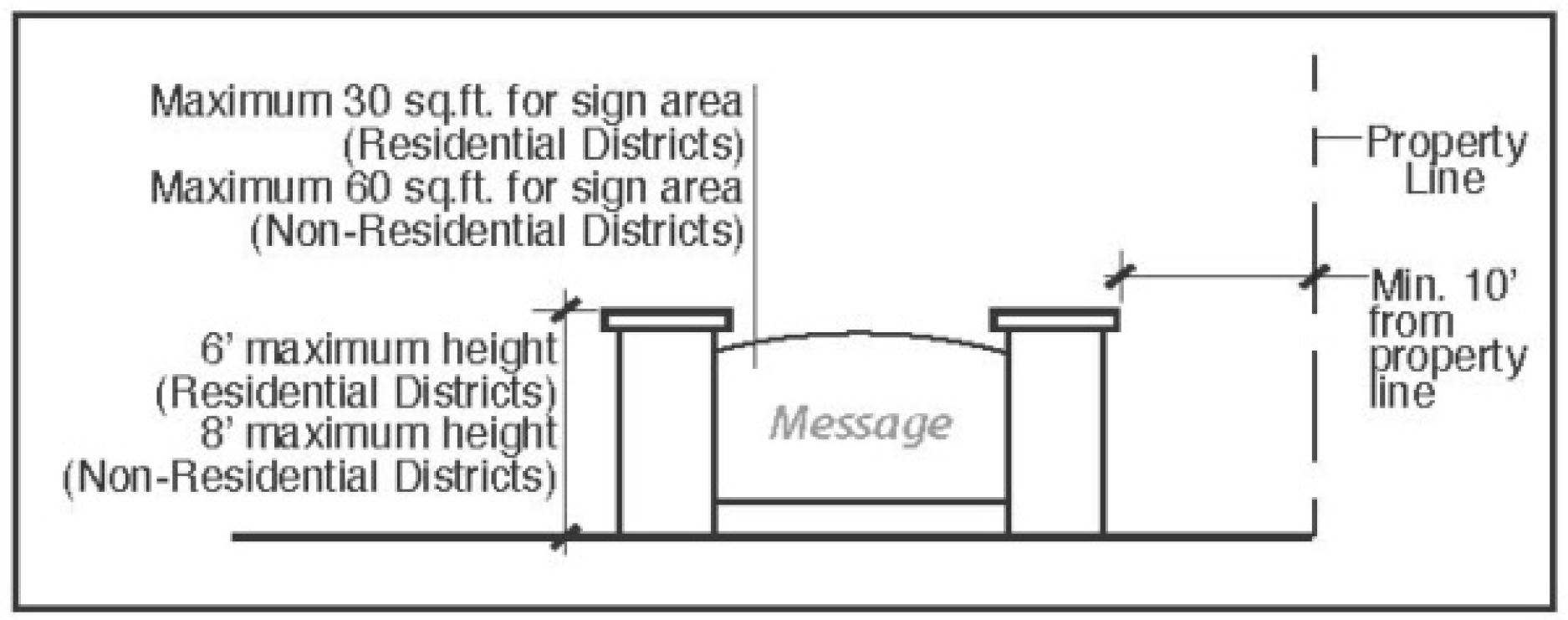 Monument signs shall be located on a site frontage adjoining a public or private street, easement or right-of-way, with a minimum setback from any property line of five (5) feet.