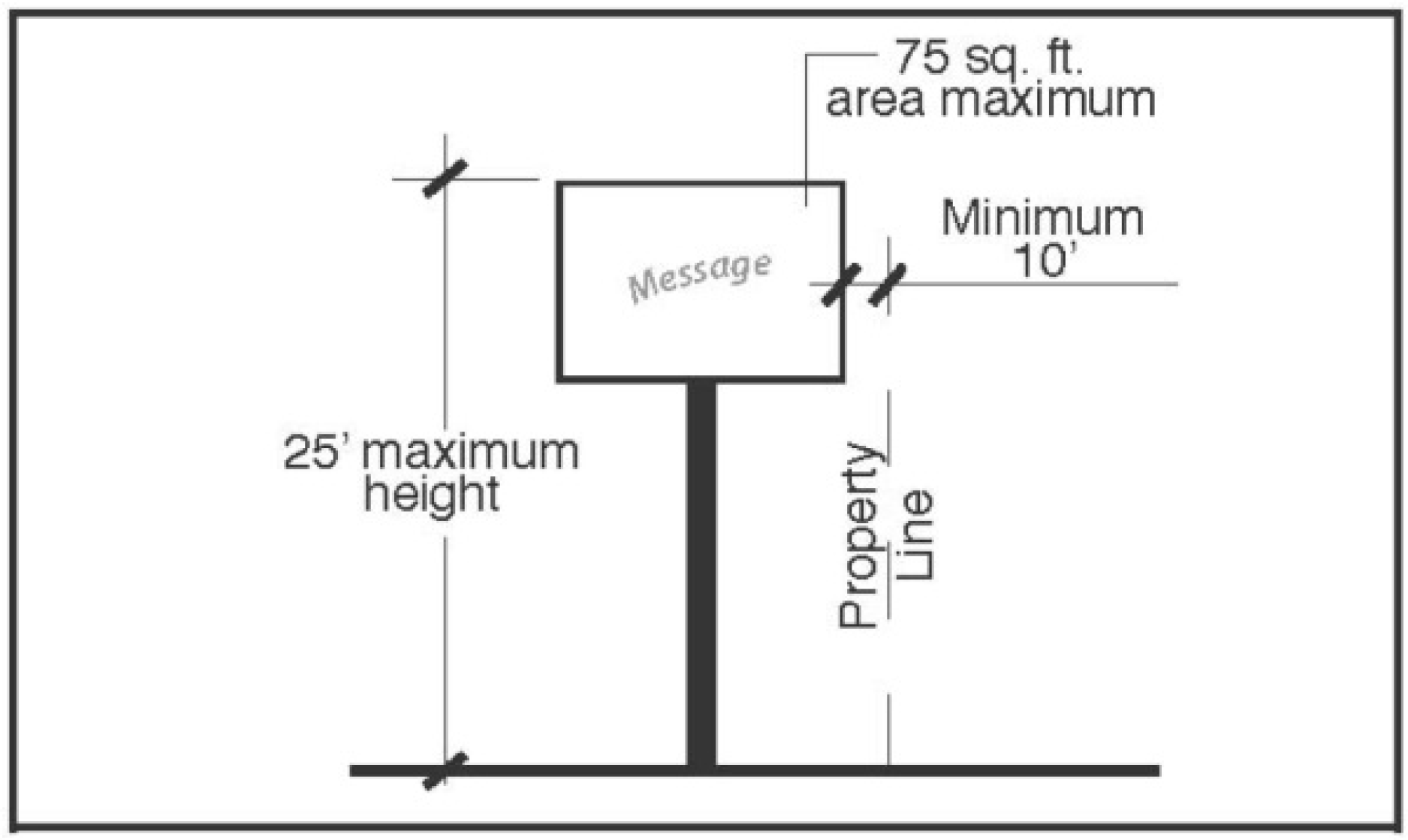 No portion of a pole sign shall encroach or project into a public right-of-way.