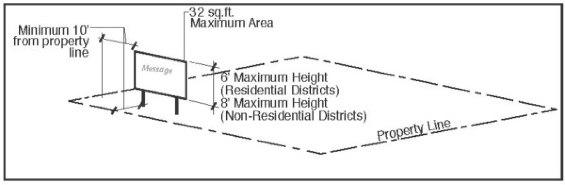 Freestanding signs shall be set back ten (10) feet from any property line adjacent to a street.