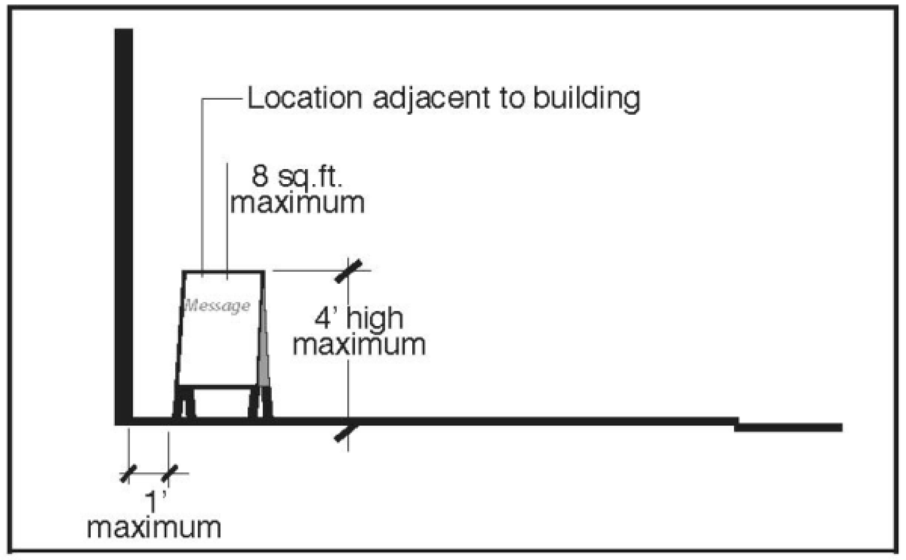 Placement of a sidewalk sign must be within one (1) foot of a building wall.