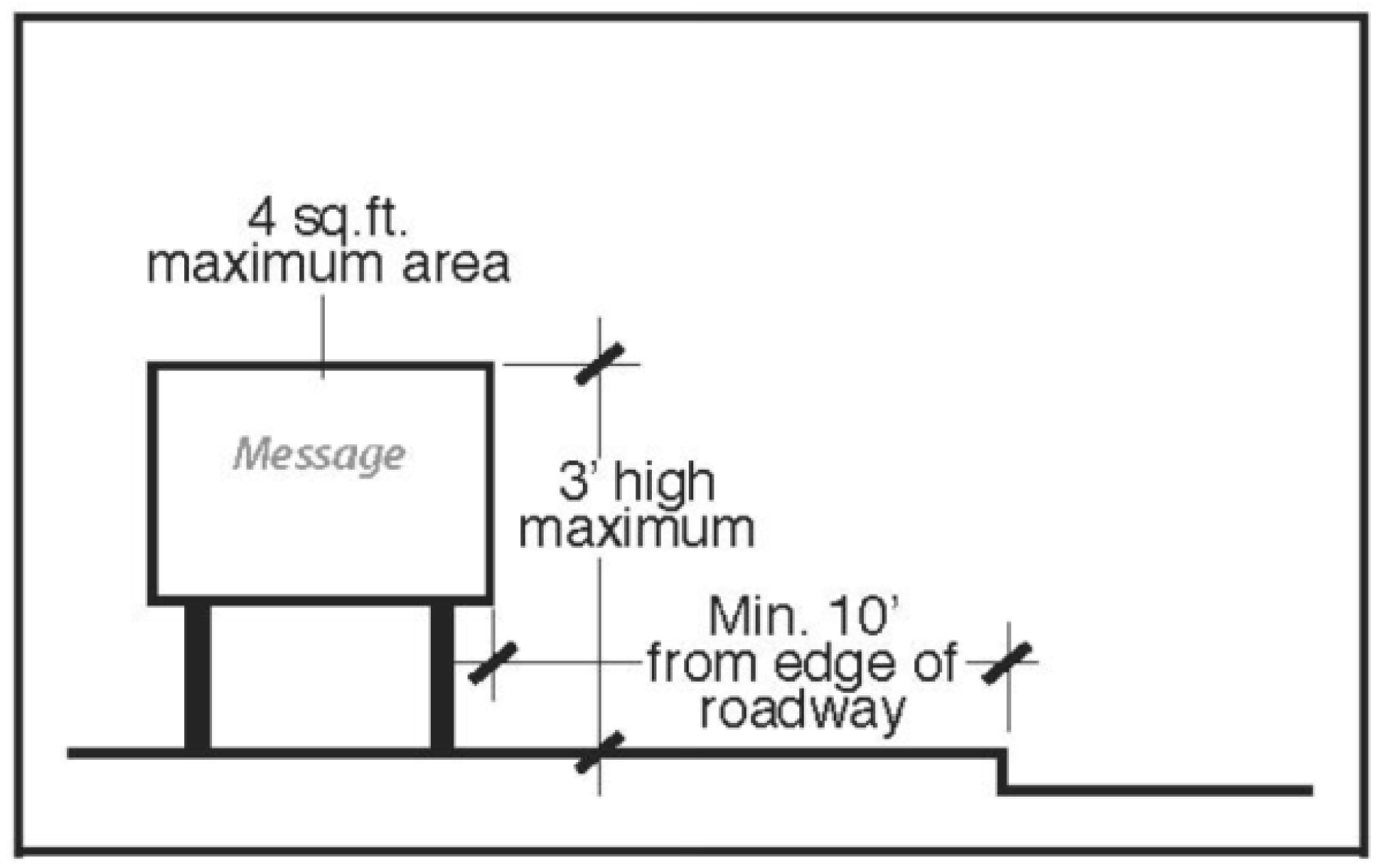 The sign shall be located a minimum of ten (10) feet from the edge of the roadway.