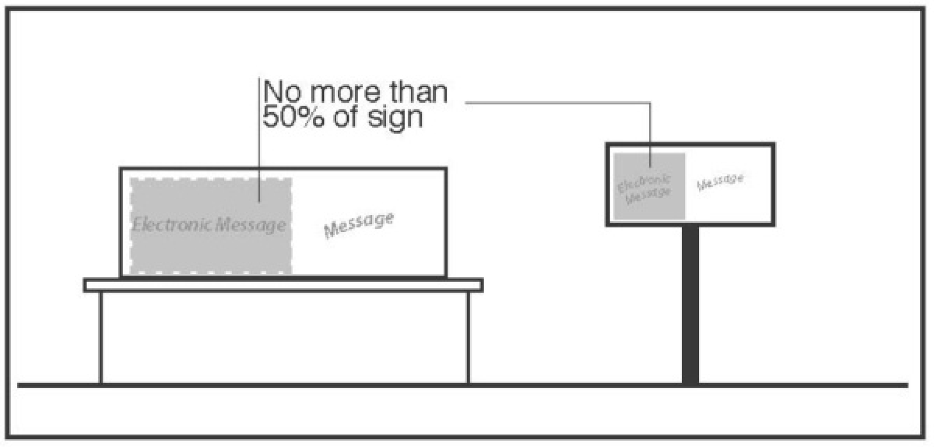Electronic Message Centers. Up to fifty percent (50%) of the allowed sign area of a pole sign or monument sign in a nonresidential district may be occupied by an electronic message center.