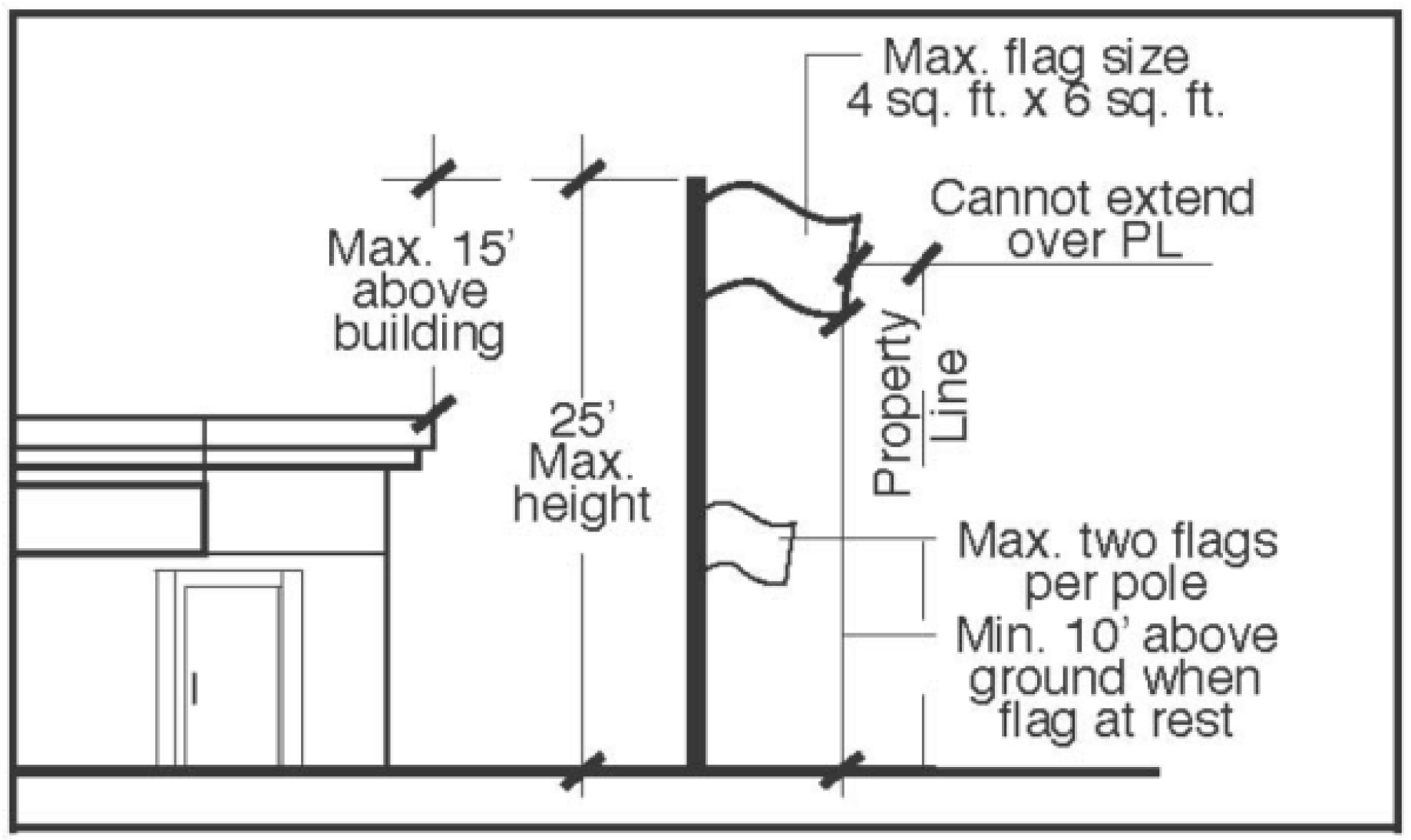Flags and Flagpoles. Flags and flagpoles shall comply with the following: