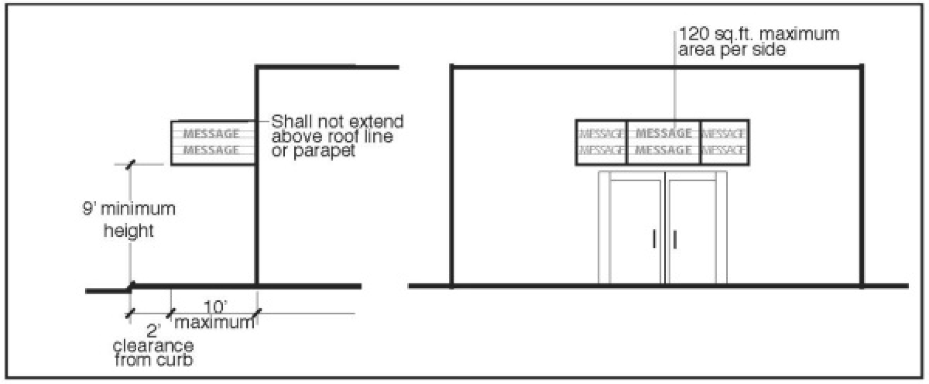 Canopy signs shall be no closer than two (2) feet to a curb line.