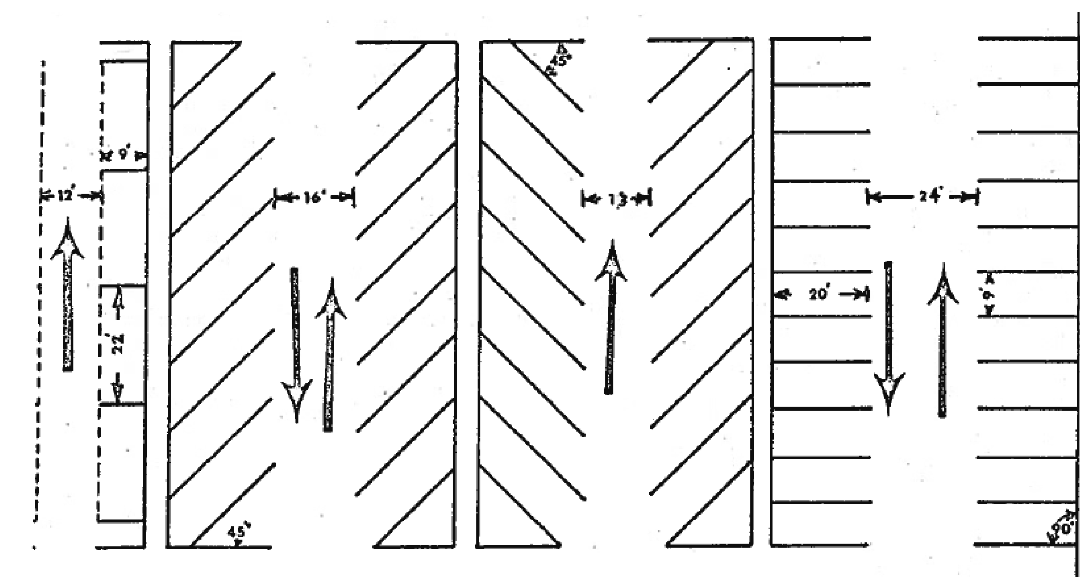 The location of off-street parking spaces in relation to the use served shall be as prescribed hereinafter. All distances specified shall be walking distances between such parking spaces and a main entrance to the use served.