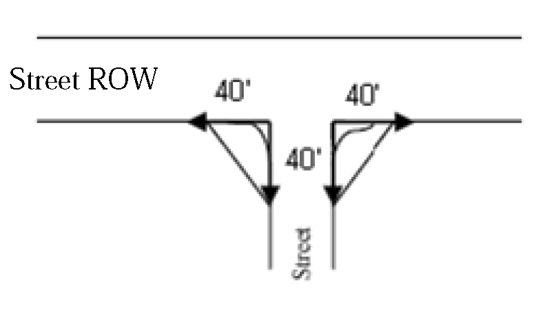 All driveways crossing a public sidewalk shall have a clear sight triangle inside the property measuring eight (8) feet by eight (8) feet.